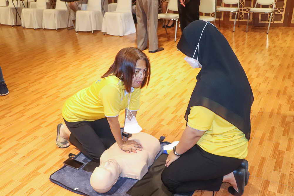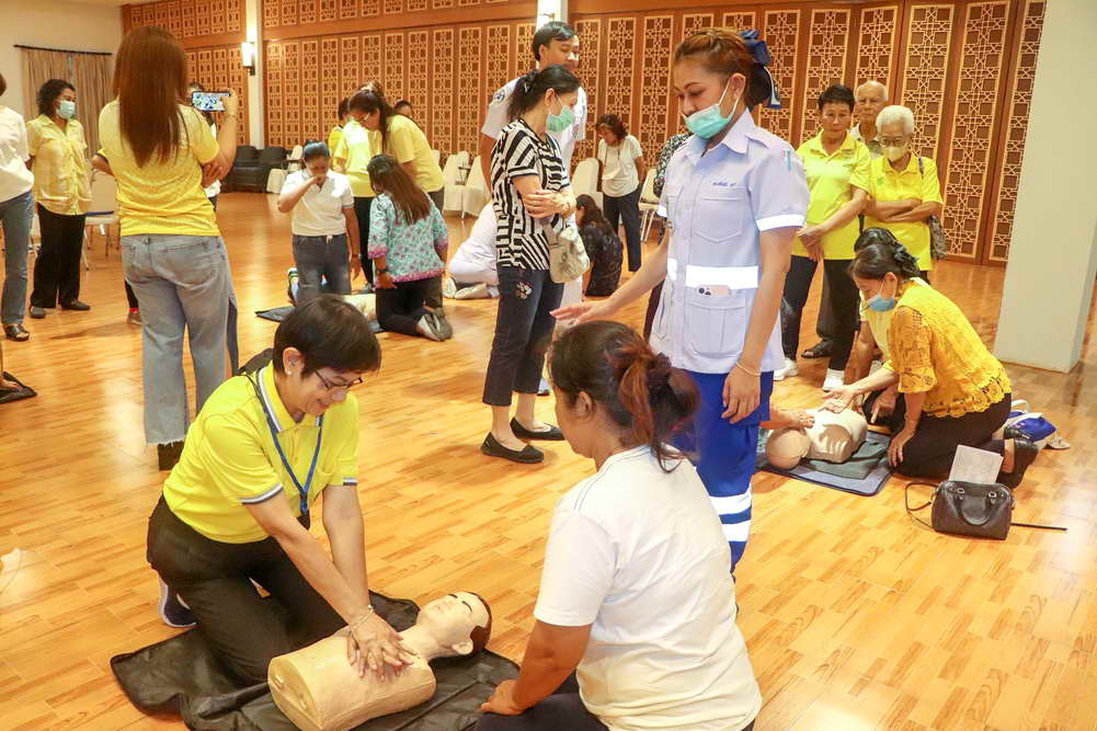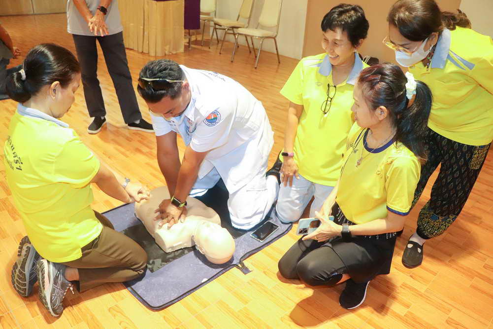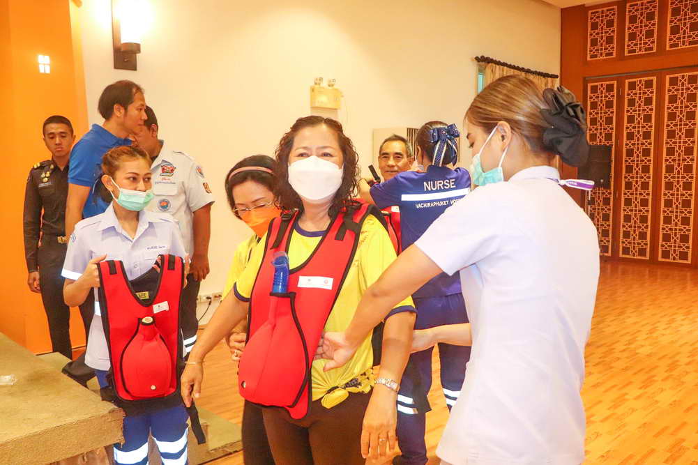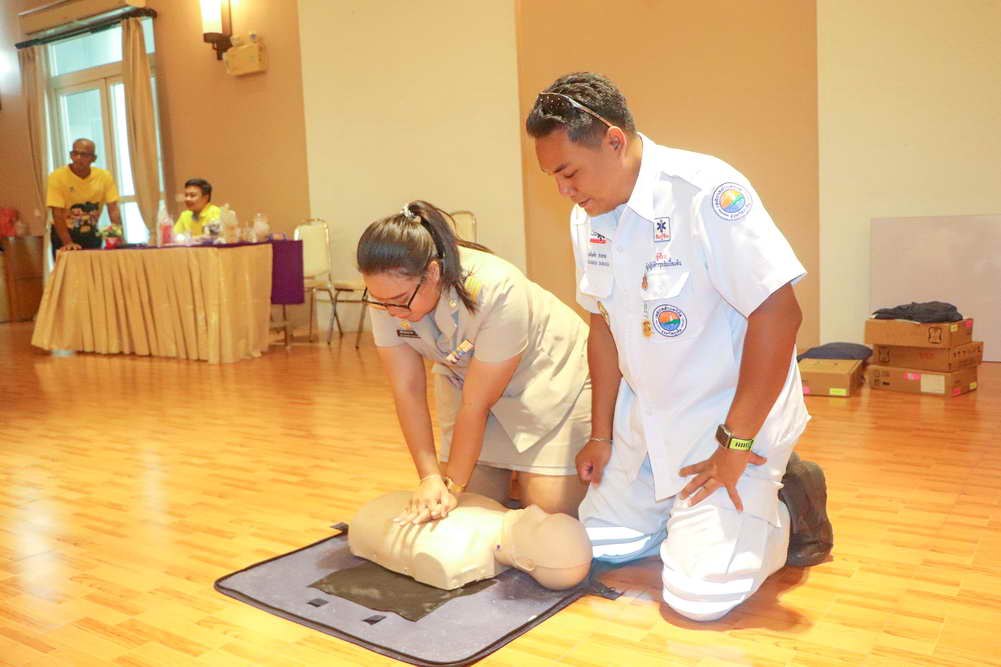 ซึ่งมีทีมวิทยากรจากโรงพยาบาลวชิระภูเก็ต มาบรรยายให้ความรู้และสาธิตวิธีการปฏิบัติในหัวข้อ ขั้นตอนการแจ้งเหตุสถานการณ์ฉุกเฉิน, ความรู้เกี่ยวกับการช่วยเหลือผู้ป่วยฉุกเฉินเบื้องต้น, การปฐมพยาบาลเบื้องต้นและการช่วยชีวิตขั้นพื้นฐาน (CPR) และขั้นตอนการใช้เครื่องกระตุกไฟฟ้าอัตโนมัติ หรือ AED