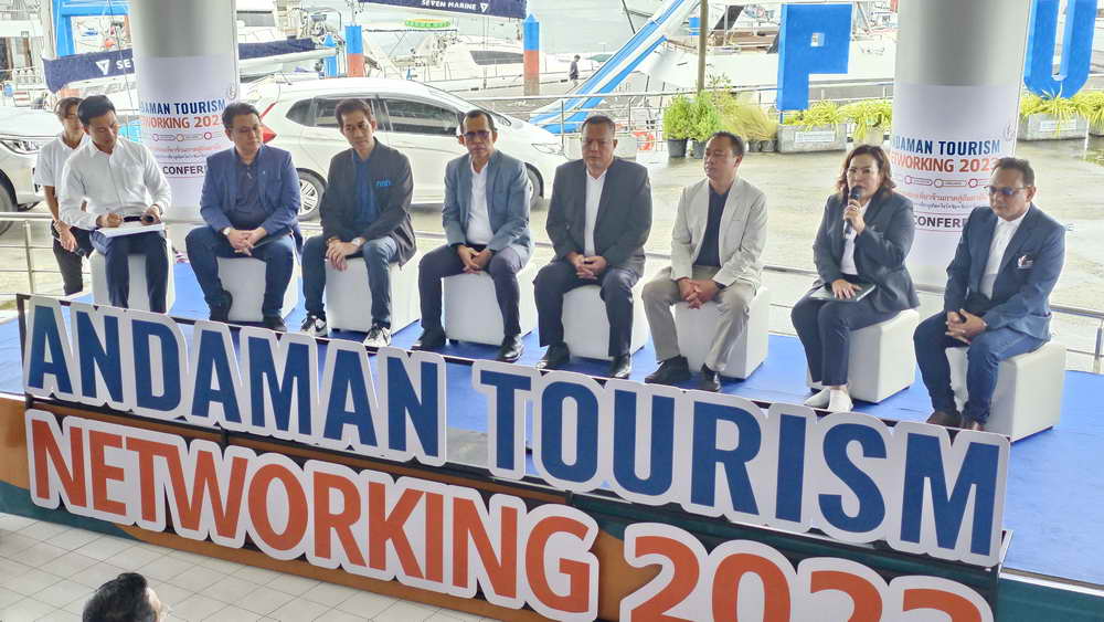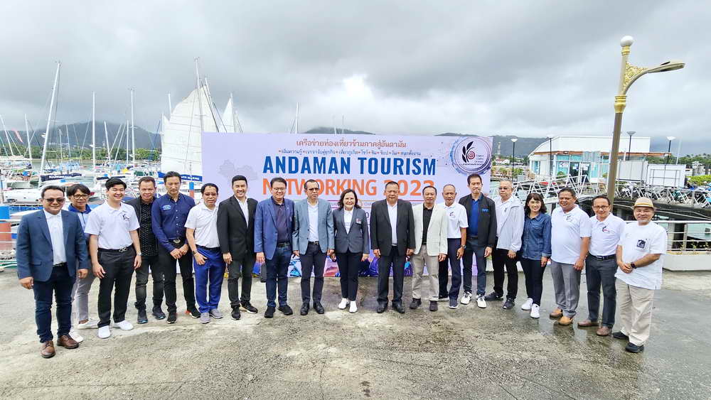 เมื่อวันที่ 23 กันยายน 2566 บริเวณศูนย์แจ้งเข้าออกเรือยอร์ช ท่าเทียบเรืออ่าวฉลอง อ.เมือง จ.ภูเก็ต นายอำนวย พิณสุวรรณ รองผู้ว่าราชการจังหวัดภูเก็ต ร่วมกับ นางวิรินทร์ตรา ปภากิจยศพัฒน์ ประธานสภาอุตสาหกรรมภูเก็ต, นายทิวัตถ์ สีดอกบวบ รองนายก อบจ. ภูเก็ต, นายมนตรี มานะต่อ รอง ผอ.ททท.ภูเก็ต, นายประชา อัศวธีระ ผู้อำนวยการดีป้าภาคใต้, นายณรงค์ พรหมจิต ผู้แทนสำนักงานทีเส็บภาคใต้ และนายพุทธา มากหลาย นายกสมาคมผู้บริหารงานช่างและพัฒนาฝีมือช่างภาคใต้ ประธานจัดงานฯ แถลงข่าวการจัดงาน “Andaman Tourism Networking 2023” เพื่อเชื่อมโยงเครือข่ายด้านการท่องเที่ยว ระหว่างวันที่ 7 – 9 ตุลาคม นี้ ที่ โรงแรมรอยัลภูเก็ตซิตี้