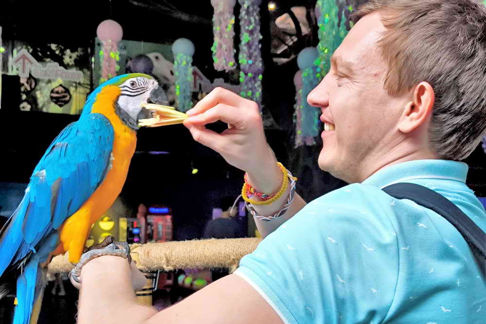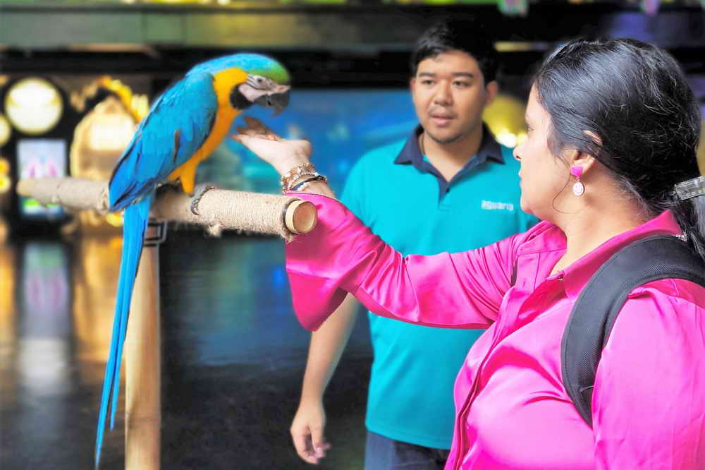 น้องอาร์โอ เป็นนกที่ฉลาด ร่าเริงบ่ายสองโมงเป็นต้นไป มาที่ อควาเรียภูเก็ต ก็ได้เล่นกับน้อง ลองป้อนตะใคร้ดู น้องชอบกัดเล่น และชอบให้ป้อนผลไม้ ถั่ว ถ่ายรูปกับน้องได้ แค่เล่นแบบอ่อนโยน นุ่มนวล น้องก็พร้อม จอยๆกับทุกคน เจอกันที่ อควาเรียภูเก็ต ชั้น B1 เซ็นทรัลภูเก็ต ฟลอเรสต้า เปิดบริการ 10.30-19.00 น. จำหน่ายบัตรรอบสุดท้าย 18.00 น. เปิดทุกวันไม่มีปิด