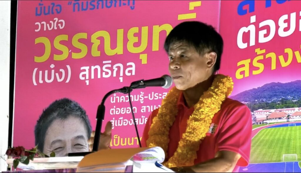 โค้งสุดท้ายสำหรับการเลือกตั้งนายกเทศมนตรีเมืองกะทู้แทนตำแหน่งที่ว่าง เมื่อช่วงค่ำของวันที่ 12 มกราคม 2567 บริเวณลานหน้าร้านกระท่อมชาบู ต.กะทู้ อ.กะทู้ จ.ภูเก็ต นายวรรณยุทธิ์ สุทธิกุล หรือ โกเบ๋ง” ผู้สมัครนายกเทศมนตรีเมืองกะทู้ หมายเลข 2 ทีมรักษ์กะทู้ ได้เปิดเวทีปราศรัยใหญ่ เพื่อนำเสนอนโยบายการทำงานหากได้รับการเลือกตั้งให้เป็นนายกเทศมนตรีเมืองกะทู้ โดยได้รับบความสนใจจากผู้ให้การสนับสนับสนุนมาร่วมรับฟังจำนวนมาก