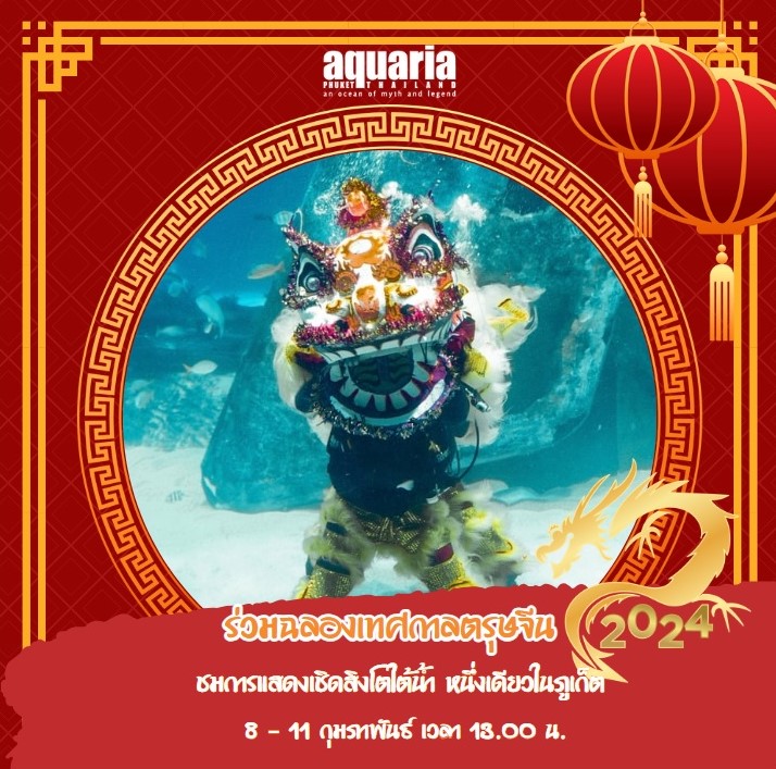 Let’s celebrate Chinese New Year at Aquaria Phuket with the year of good luck let’s enjoy with the first light lion dance underwater show in Phuket, Chinese New Year Parade and The God of wealth feeding 8 – 11 February 2024 Don’t miss it!!! Aquaria Phuket floor B1 Central Floresta
