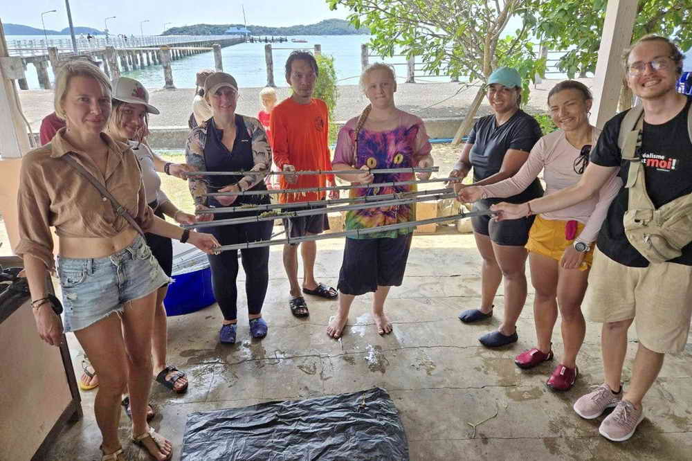 จากนั้นจึงได้ติดตั้งแปลงเสริมอาหาร ชนิดหญ้าช้องและหญ้าตะกานน้ำเค็ม ด้านซ้ายและขวาของสะพานราไวย์ ด้านละ 2 แปลง รวม 4 แปลง วันนี้ไม่พบพะยูนเข้ามาบริเวณสะพานราไวย์ สภาพอากาศครึ้มฝน น้ำทะเลใส ส่วนสถานการณ์บริเวณ อ่าวตังเข็น ภูเก็ต ทำการวางแปลงเสริมอาหารให้กับพะยูน เป็นวันที่ 4 ไม่พบร่องรอยการกินของพะยูน