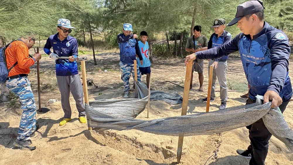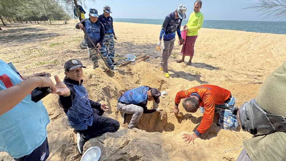 ซึ่งเจ้าหน้าที่ได้พิจารณาแล้วเห็นว่าตำแหน่งการวางไข่เต่าทะเล ทั้ง 5 รัง อยู่พ้นแนวระดับของน้ำทะเลท่วมถึง เจ้าหน้าที่กรม ทช. จึงได้กลบหลุมและจัดทำคอกป้องกันภัยคุกคามตามธรรมชาติ อีกทั้งยังไม่สามารถระบุชนิดของเต่าทะเลทั้งหมดได้ โดยกรมทรัพยากรทางทะเลและชายฝั่ง ได้ประชาสัมพันธ์ให้ประชาชนในพื้นที่ และนักท่องเที่ยว เฝ้าติดตามการขึ้นวางไข่ของเต่าทะเล ในบริเวณพื้นที่ชายหาดเกาะพระทอง ตลอดจนติดตามสถานการณ์ของสัตว์ทะเลหายากใกล้สูญพันธุ์ชนิดอื่นๆ ในพื้นที่อีกด้วย จากการรายงานล่าสุด ปัจจุบันพบเต่าขึ้นว่างไข่แล้วจำนวน 17 รัง