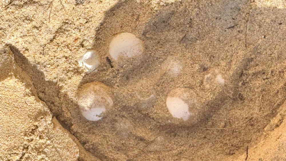รังที่ 1 ตำแหน่งการวางไข่พิกัด 417405 E 998853 N ระดับความลึกไข่ 69 เซนติเมตร ขนาดเส้นผ่าศูนย์กลางของไข่อยู่ที่ 4.05 เซนติเมตร รังที่ 2 ตำแหน่งการวางไข่ พิกัด 417394 E 998477 N ระดับความลึกของไข่อยู่ที่ 67 เซนติเมตร ขนาดเส้นผ้าศูนย์กลางของไข่อยู่ที่ 4.28 เซนติเมตร รังที่ 3 ตำแหน่งการวางไข่พิกัด 417844 E 1004672 N ระดับความลึกของไข่ 60 เซนติเมตร ขนาดเส้นผ่าศูนย์กลางของไข่อยู่ที่ 3.77 เซนติเมตร
