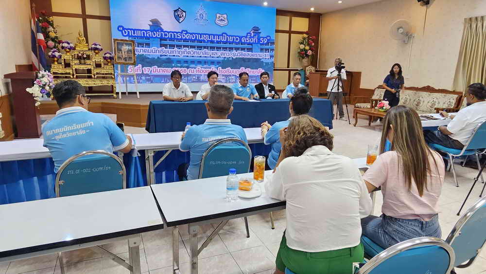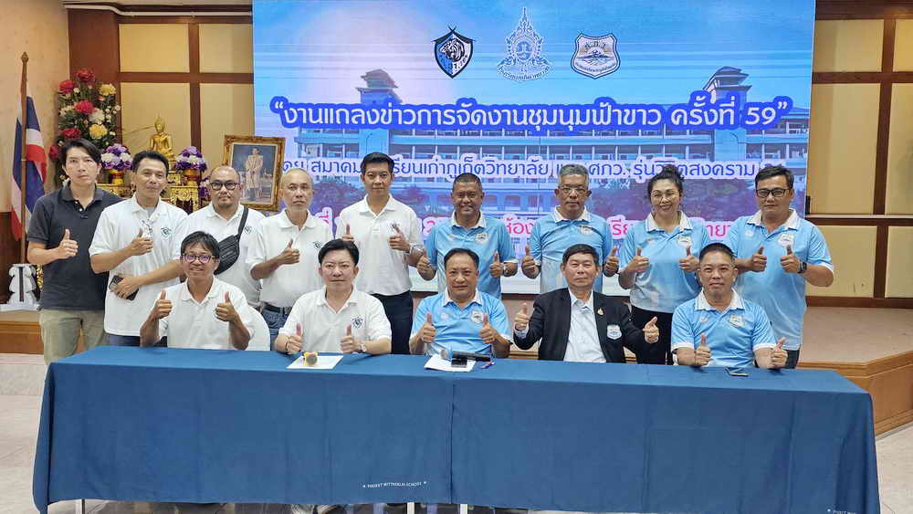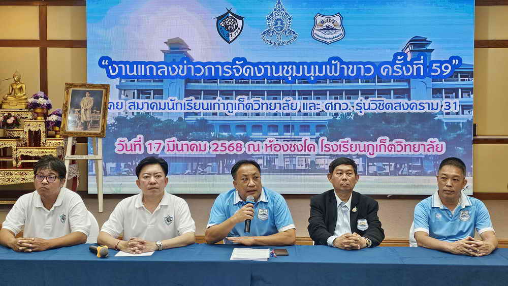 เมื่อวันที่ 17 มีนาคม 2568 ที่ห้องชงโค โรงเรียนภูเก็ตวิทยาลัย นายประดิษฐ์ แสงจันทร์ รักษาการนายกสมาคมนักเรียนเก่าภูเก็ตวิทยาลัย พร้อมด้วย นายอภิมุข เจริญกิจ ประธานจัดงานชุมนุมฟ้าขาว ครั้งที่ 59 และคณะกรรมการการจัดงาน ได้ร่วมกันแถลงข่าวการจัดงานชุมนุมฟ้าข่าว ครั้งที่ 59 โดยการจัดงานชุมนุมฟ้าขาว ครั้งที่ 59