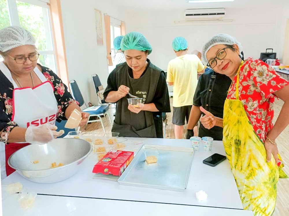 โดยมีนางสาวชมณพรรษ จายุพันธ์ และนายรณกร ไสยเกิด วิทยากรจากวิทยาลัยอาชีวศึกษาภูเก็ต มาบรรบายพร้อมสาธิตการทำ บานอฟฟี่ และสตรอเบอรี่ชีสพาย เพื่อต่อยอดสร้างเป็นอาชีพ สร้างรายได้เสริมให้กับตนเองและครอบครัว