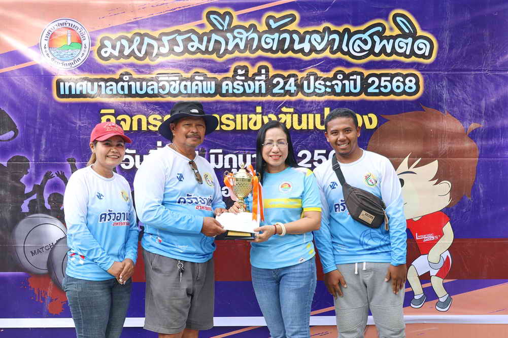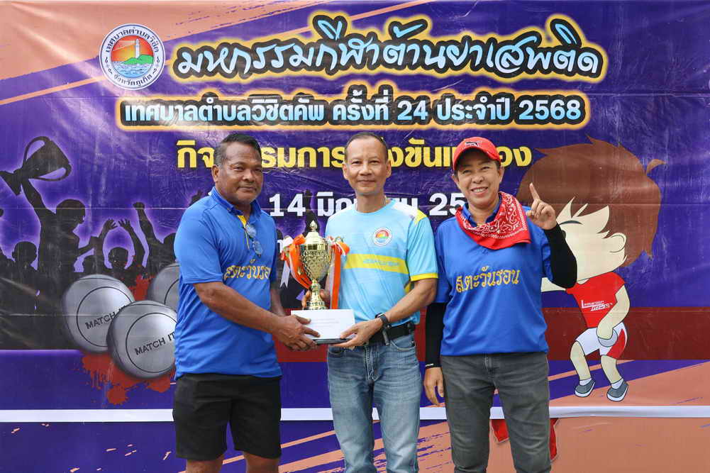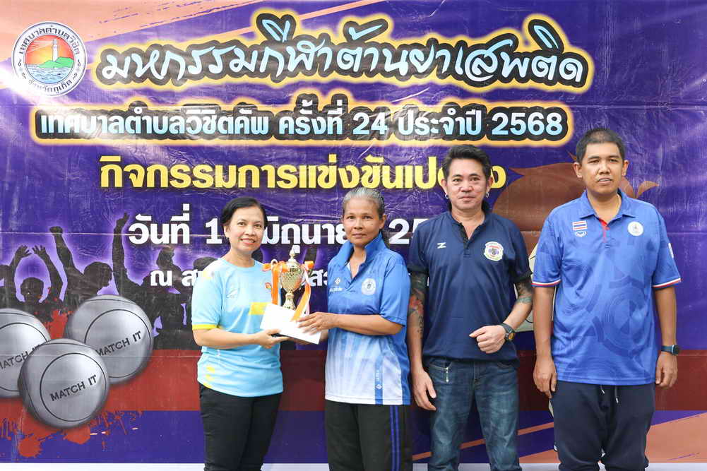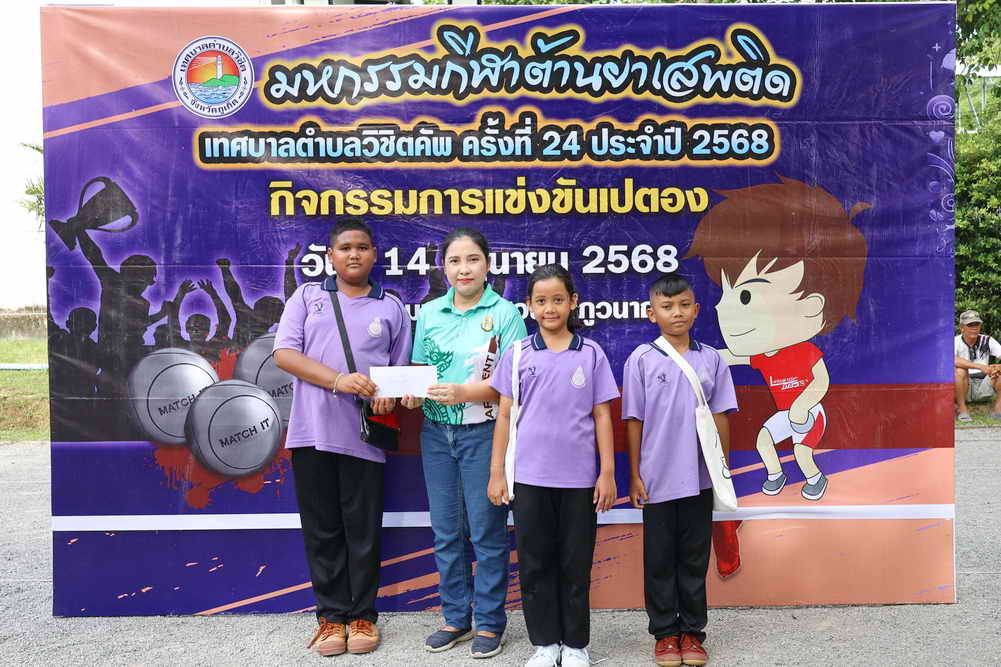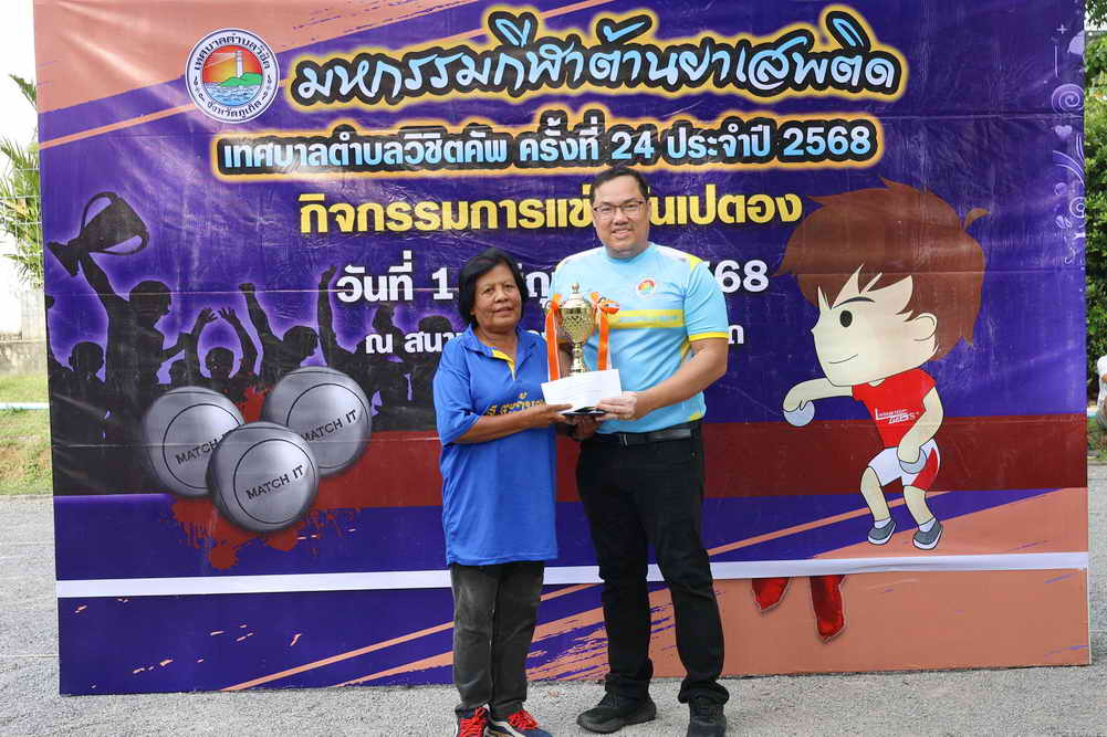 เป็นเกียรติมอบรางวัลให้แก่ ผู้ที่ได้รับรางวัลจากการแข่งขันกีฬาเปตอง ในโครงการมหกรรมกีฬาต้านยาเสพติด เทศบาลตำบลวิชิตคัพ ครั้งที่ 24 ประจำปี 2568 ซึ่งจัดโดย กองการศึกษา เทศบาลตำบลวิชิต