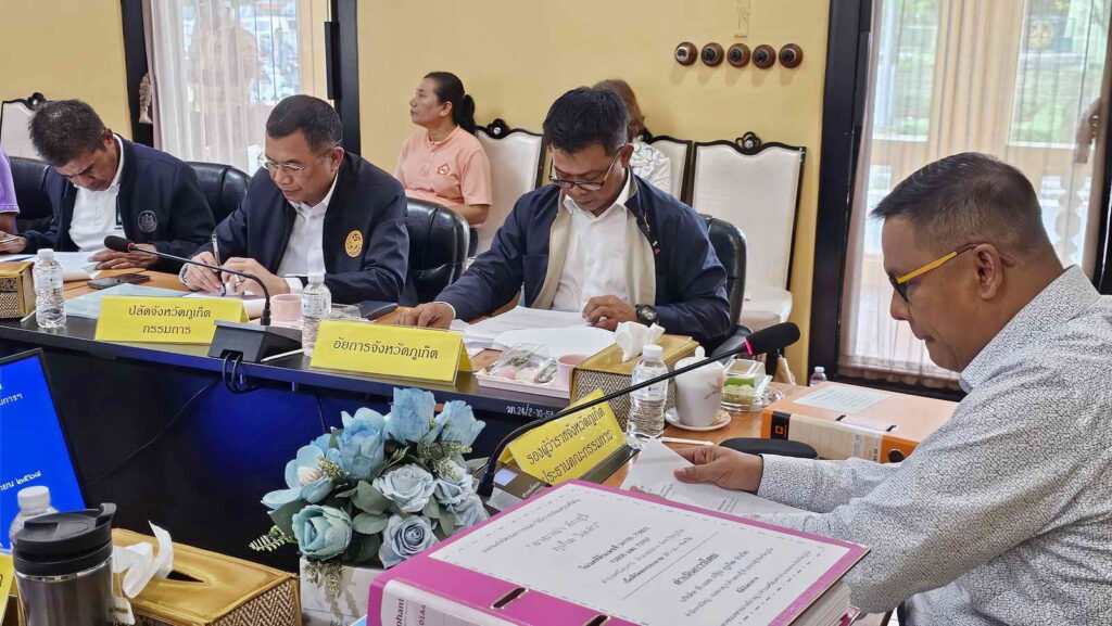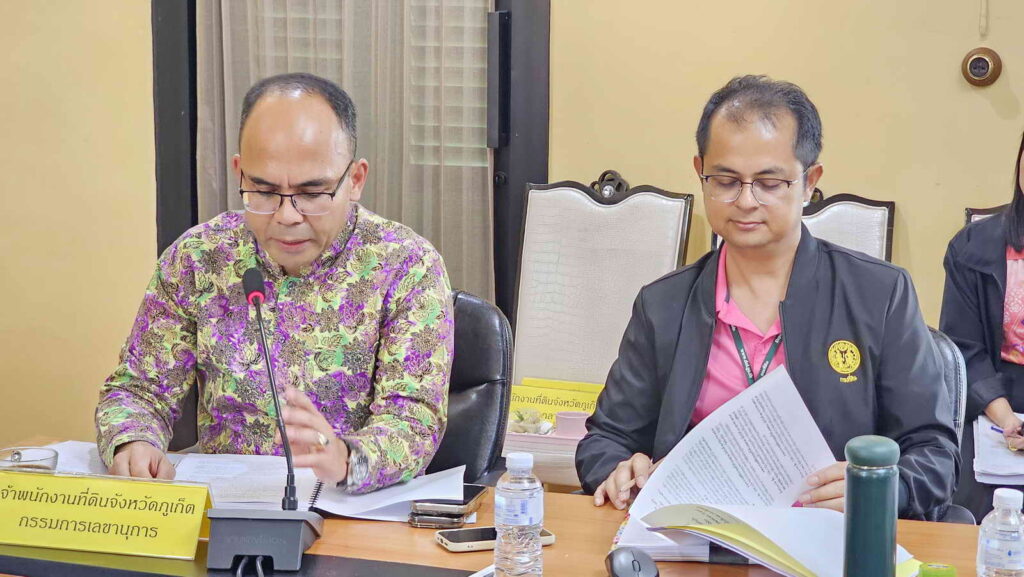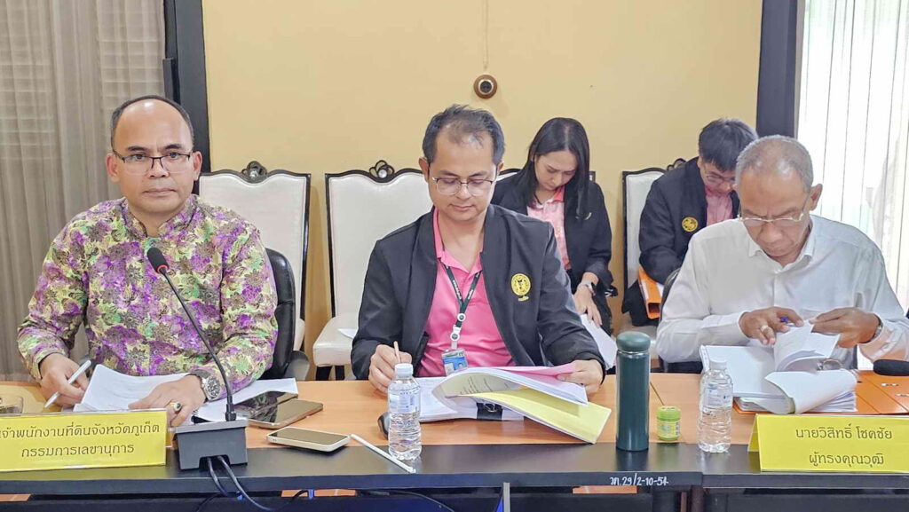เมื่อวันที่ 19 สิงหาคม 2568 ณ ห้องประชุมหอทะเบียนที่ดิน 2459  สำนักงานที่ดินจังหวัดภูเก็ต  นายกองเอกอดุลย์ ชูทอง รองผู้ว่าราชการจังหวัดภูเก็ต เป็นประธานการประชุมคณะกรรมการจัดสรรที่ดินจังหวัดภูเก็ต ครั้งที่  3/2568 โดยมีนายธีระพงศ์ ช่วยชู ปลัดจังหวัดภูเก็ต นายพีรยศ ศรีสุวรรณ์ เจ้าพนักงานที่ดินจังหวัดภูเก็ต ตลอดจนหน่วยงานที่เกี่ยวข้อง และผู้ทรงวุฒิ อาทิ โยธาธิการและผังเมืองภูเก็ต, ตัวแทนองค์กรปกครองส่วนท้องถิ่นต่างๆ ในพื้นที่ที่มีการขออนุญาต เป็นต้น นอกจากนี้ยังมีตัวแทนจากบริษัทผู้ขออนุญาตจัดสรร ร่วมชี้แจงต่างๆ ด้วย