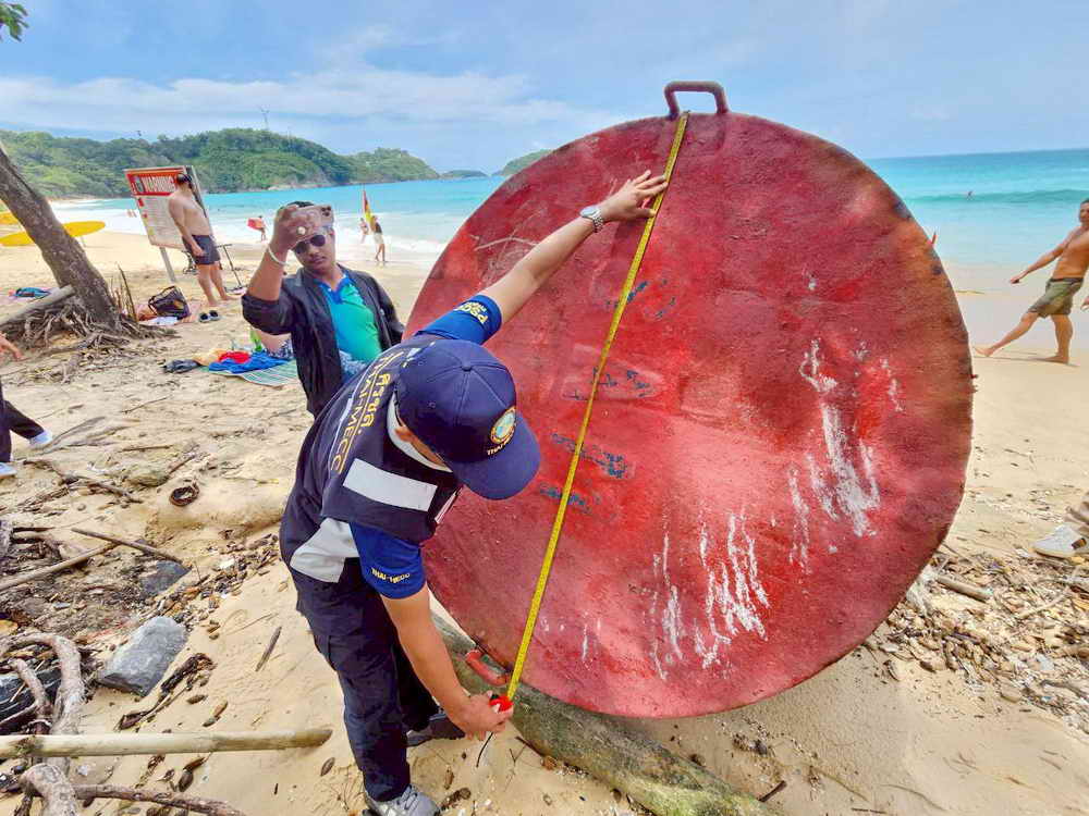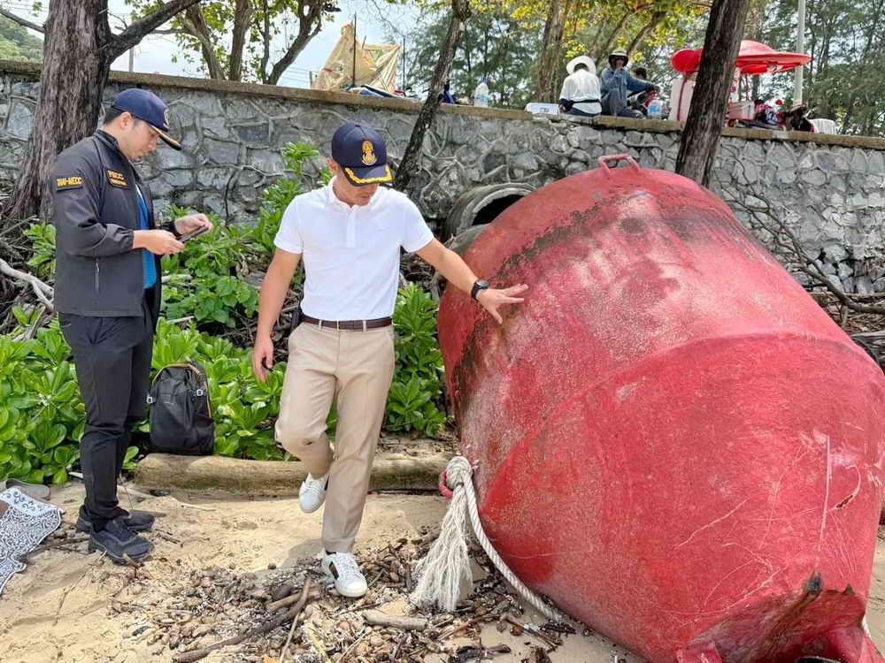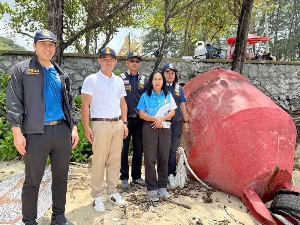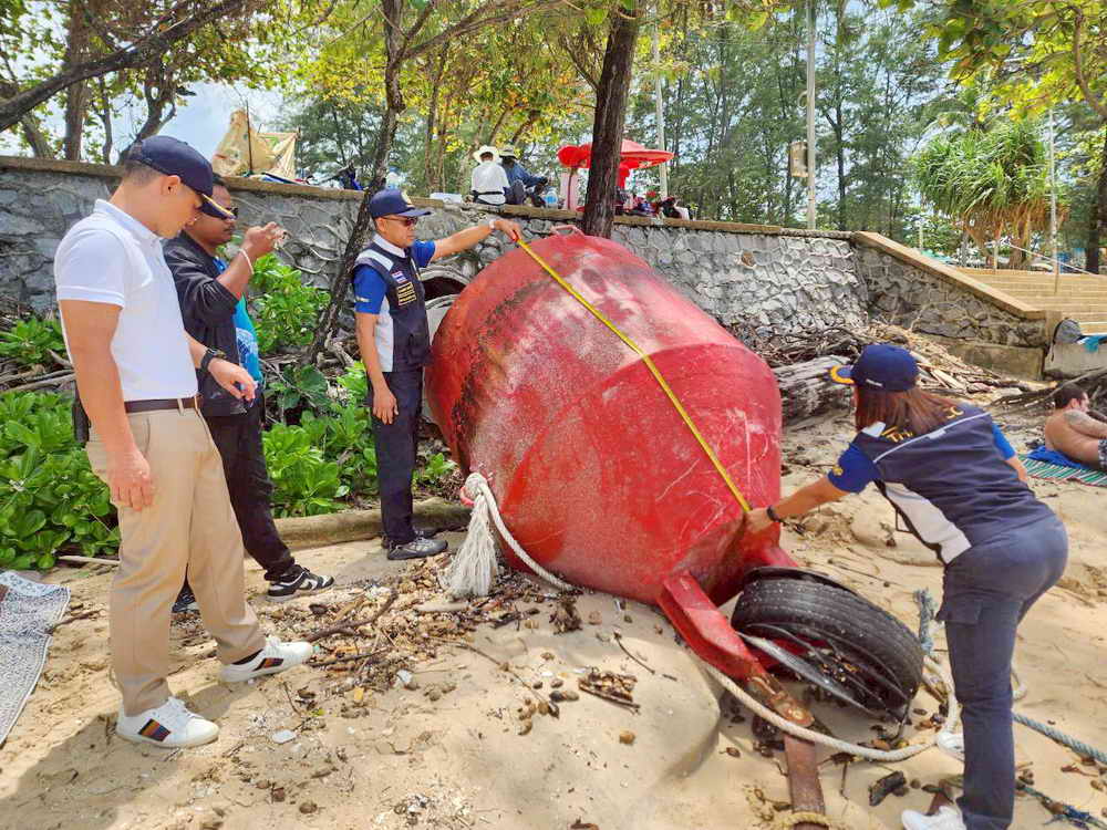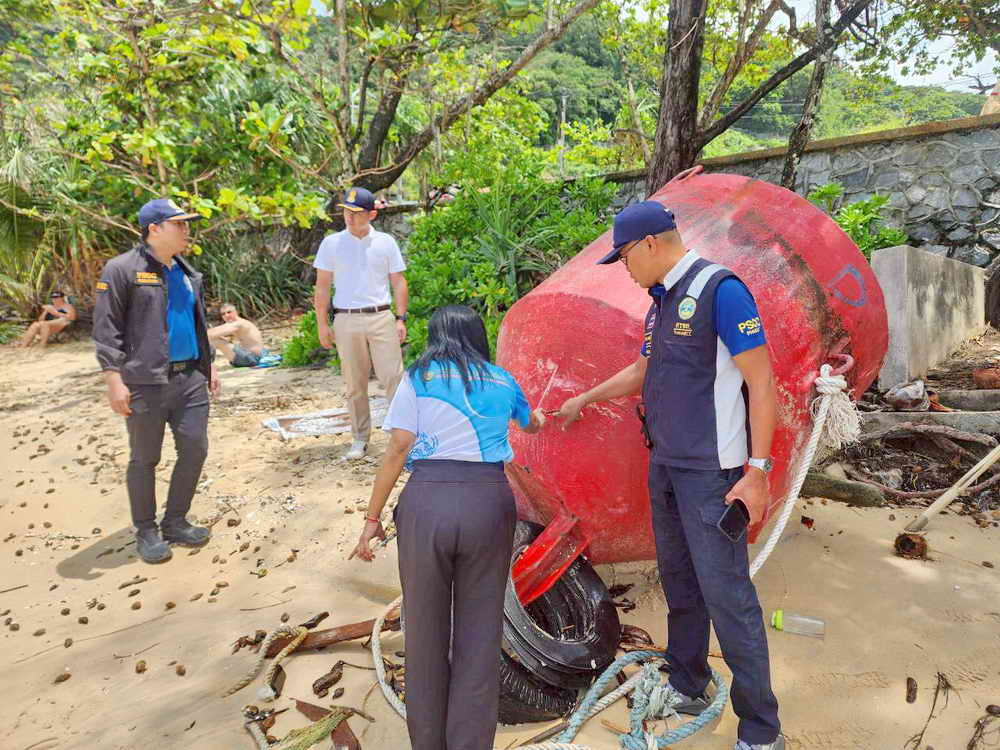ทต.ราไวย์ ร่วมกับศรชล.ภาค3 ตรวจสอบทุ่นขนาดใหญ่ที่ลอยมาติดชายหาดในหาน