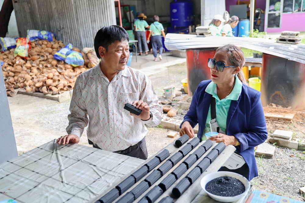 ทั้งนี้ ทางคณะยังได้ลงพื้นที่เยี่ยมชมศูนย์การเรียนรู้เศรษฐกิจพอเพียงตำบลวิชิต บริเวณสวนศรีภูวนาถ ชมการดำเนินงานของศูนย์ฯ ในฐานต่างๆ อาทิ การทำน้ำมันไบโอดีเซล การเผาถ่านไม้ ถ่านกะลาอัดแท่ง อาหารอัดเม็ด และอื่นๆ อีกมากมาย