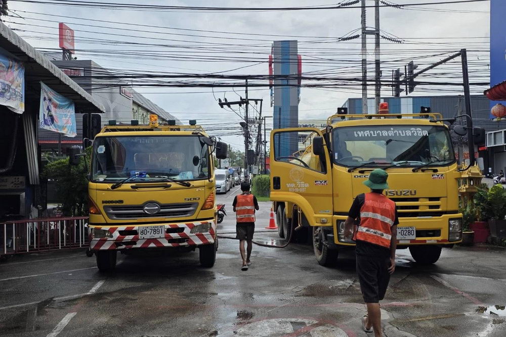 ลงพื้นที่ดูดโคลนในท่อระบายน้ำ บริเวณแยกพัฒนาท้องถิ่น หมู่ 2 ตำบลวิชิต เพื่อเอาดินโคลน ขยะ ไขมัน และสิ่งปฏิกูลอื่น ๆ ที่สะสมอยู่ในท่อออก ซึ่งเป็นสาเหตุหลักของการอุดตัน ช่วยให้การระบายน้ำมีประสิทธิภาพมากขึ้น ลดความเสี่ยงและลดระดับความเสียหายจากน้ำท่วมในพื้นที่ได้