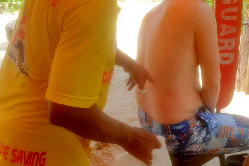 ช่วงนี้ในพื้นที่หาดป่าตอง จะมีนักท่องเที่ยวที่สัมผัสพิษแมงกะพรุนไฟกันเป็นจำนวนมาก และเมื่อขึ้นจากน้ำก็เกิดอาการแพ้ ขึ้นผื่นแดง และปวดแสบปวดร้อน เจ้าหน้าที่ไลฟ์การ์ดเทศบาลเมืองป่าตอง ได้ใช้น้ำส้มสายชูในการปฐมพยาบาลเบื้องต้น