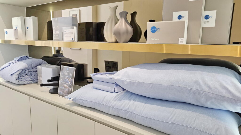 ภายในงานเดียวกัน Omazz ยังได้เปิดตัว “Prestigia Jeeno Edition” หมอนรุ่นพิเศษที่ถูกออกแบบมาเพื่อทำงานร่วมกับที่นอนรุ่นนี้อย่างสมบูรณ์แบบ ด้วยเส้นใย 100% Nano-down Fiber ที่ละเอียดเป็นพิเศษ และผ้าหุ้ม TENCEL™ Downproof 495 TC ทอด้วยใยธรรมชาติที่ให้สัมผัสนุ่ม เย็นสบาย เส้นใยขนาดนาโนภายในหมอนไม่สามารถเล็ดลอดออกมาได้ ช่วยควบคุมอุณหภูมิระหว่างการนอนหลับได้อย่างมีประสิทธิภาพ ช่วยระบายอากาศ ลดความอับชื้น และเพิ่มความผ่อนคลายให้กับกล้ามเนื้อบริเวณต้นคอและบ่าไหล่ หมอนรุ่นนี้จึงเป็นองค์ประกอบสำคัญที่ช่วยยกระดับประสบการณ์การพักผ่อนให้สมบูรณ์แบบยิ่งขึ้น