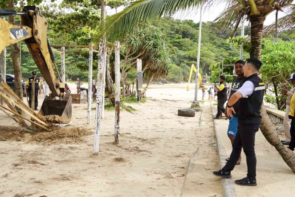 ซึ่งจากการลงพื้นที่ตรวจสอบ พบว่าสิ่งปลูกสร้าง ที่มีการร้องเรียนมาดังล่าว มีการปลูกสร้างในพื้นที่สาธารณะ และไม่ได้รับอนุญาตให้ติดตั้งในพื้นที่สาธารณะ จึงทำการรื้อถอนเก็บหลักฐานรักษาในเทศบาลตำบลราไวย์ต่อไป