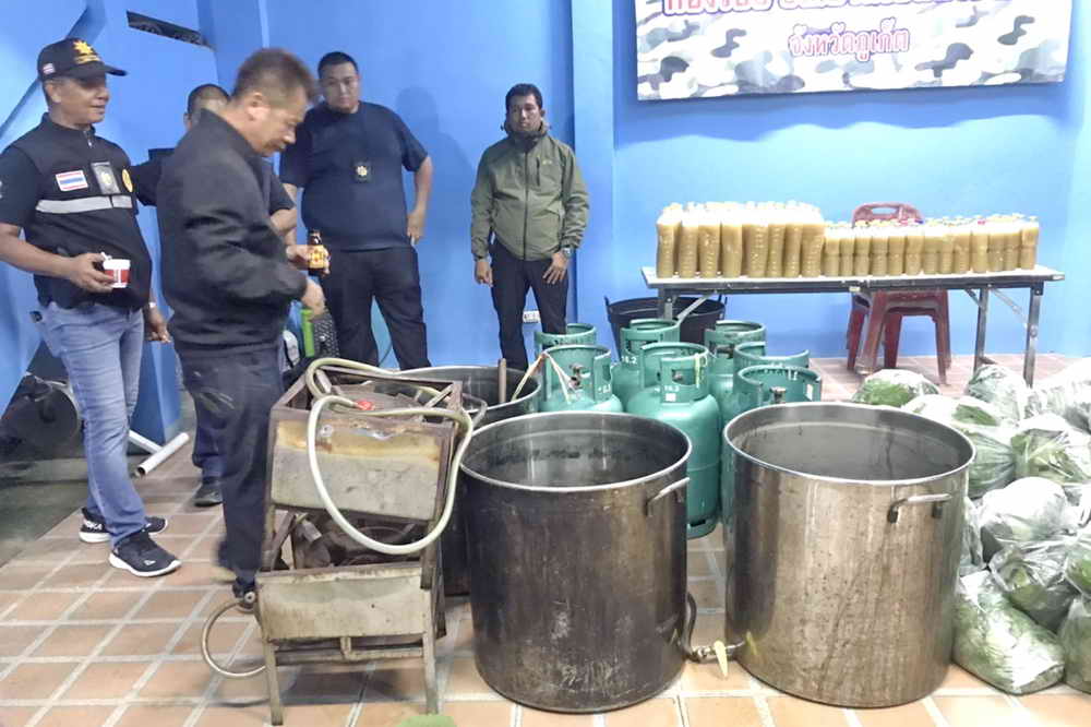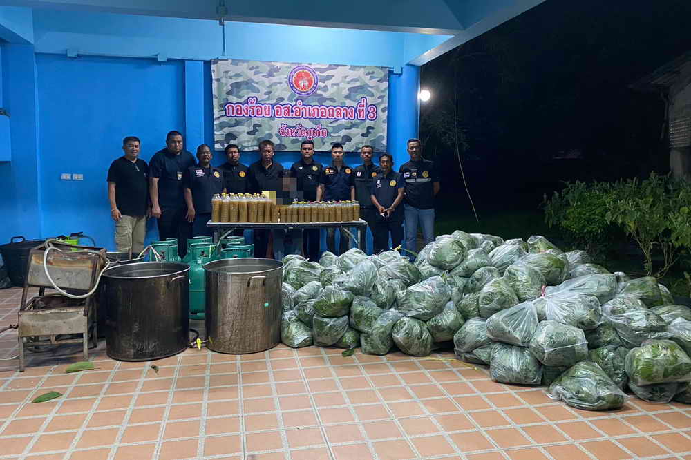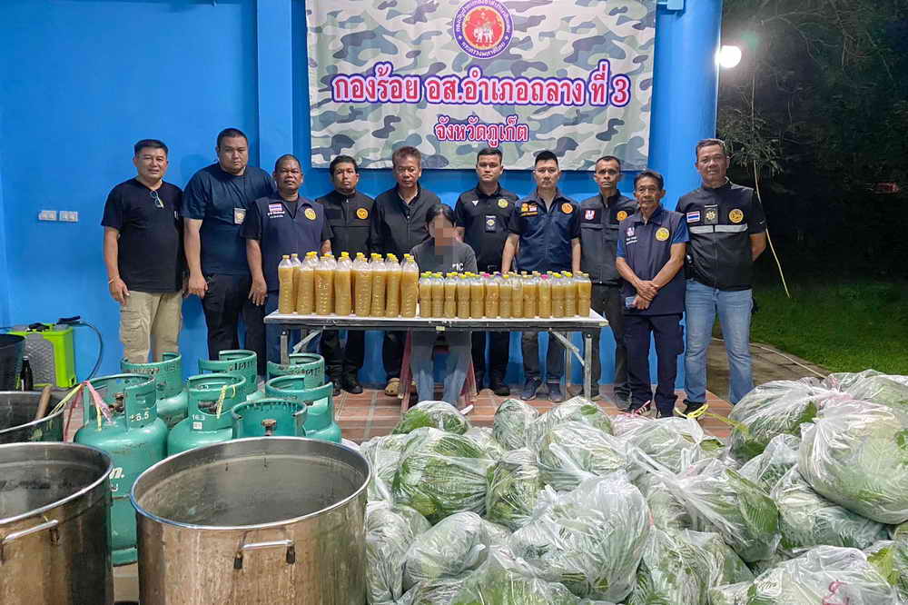 โดยเจ้าหน้าที่เข้าจับกุมได้ที่บ้านเช่าใกล้สี่แยกบ้านเคียน หมู่ที่ 1 ตำบลเทพกระษัตรี พบของกลางเป็นน้ำต้มพืชใบกระท่อมบรรจุขวดหลายขนาด รวมกว่า 70 ขวด ใบกระท่อมสดจำนวนมาก อุปกรณ์ต้มและถังแก๊สสำหรับผลิตน้ำกระท่อมจำนวนหลายรายการ
