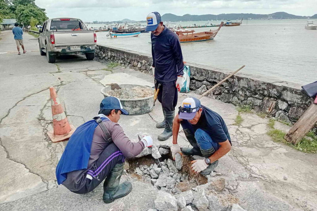 เมื่อวันที่ 7 พฤศจิกายน 2568 บริเวณถนนหน้าหาดบางคณฑี หมู่ 5 ตำบลราไวย์ อำเภอเมือง จังหวัดภูเก็ต นายเทมส์ ไกรทัศน์ นายกเทศมนตรีตำบลราไวย์ พร้อมด้วยนายสมทรง แซ่ตั้ง ผู้อำนวยการกองช่าง และเจ้าหน้าที่กองช่าง เทศบาลตำบลราไวย์ ลงพื้นที่ซ่อมแซมถนนริมเขื่อน บริเวณหน้าหาดบางคณฑี หมู่ 5 พร้อมทั้งนำข้อมูลเข้าแผนพัฒนาท้องถิ่นต่อไป