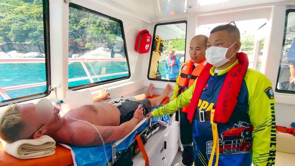เมื่อไปถึงจุดเกิดเหตุ เจ้าหน้าที่พบชายชาวฝรั่งเศส อายุประมาณ 42 ปี นอนอยู่บนเรือและมีอาการตรงตามที่ได้รับแจ้ง จากการสอบถาม ผู้ป่วยระบุว่า เกรงว่าจะเป็นโรคหัวใจ เนื่องจากครอบครัวมีประวัติด้านโรคหัวใจ เจ้าหน้าที่จึงเร่งให้การช่วยเหลือเบื้องต้นและนำผู้ป่วยกลับเข้าฝั่งทันที