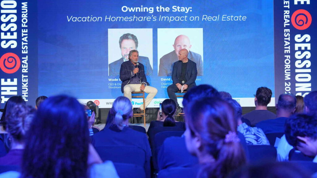 คุณเดวิด จอห์นสัน ประธานเจ้าหน้าที่บริหารของ Delivering Asia ขึ้นเวทีร่วมกับคุณเวด ชีลี ผู้ก่อตั้ง และประธานเจ้าหน้าที่บริหารของ ThirdHome พูดคุยในหัวข้อ “โมเดล Vacation Homeshare กับผลกระทบต่อการพัฒนาอสังหาริมทรัพย์” ผู้นำและผู้เชี่ยวชาญในอุตสาหกรรม