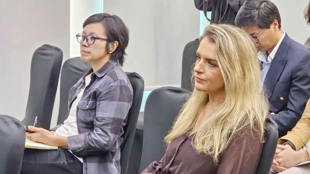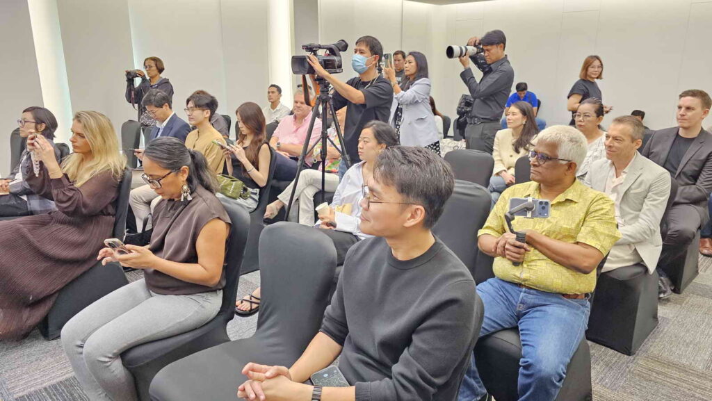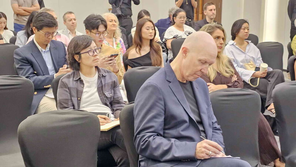 วิทยากรในงานแถลงข่าว (ซ้ายไปขวา): คุณเจสสิก้า คิมแซป, คุณฐิติวัฒน์ คูวิจิตรสุวรรณ, คุณพราวพุธ ลิปตพัลลภ, คุณเวด ชีลี, คุณภูมิชาย มัธยมภพภิญโญ, คุณบิลล์ บาร์เน็ตต์ และ คุณเดวิด จอห์นสัน