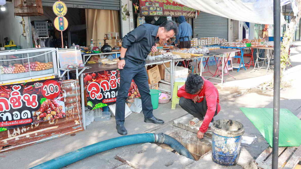 เมื่อวันที่ 8 ธันวาคม 68 ที่บริเวณถนนศรีเสนา ตำบลตลาดใหญ่ อำเภอเมืองภูเก็ต นายศุภโชค ละอองเพชร นายกเทศมนตรีนครภูเก็ต ลงพื้นที่ถนนศรีเสนา ติดตามการดำเนินงานขุดลอก ฉีดล้าง กำจัดสิ่งปฏิกูลคูระบายน้ำ เพื่อเพิ่มประสิทธิภาพการไหลของน้ำ ป้องกันปัญหาน้ำขังรอระบายในช่วงฝนตก และมีระดับน้ำทะเลหนุนสูง พบเศษขยะอินทรีย์ ปูน ดิน ทราย และเศษเหล็กบางส่วนในคูระบายน้ำ โดยมี เจ้าหน้าที่ผู้เกี่ยวข้อง ร่วมลงพื้นที่