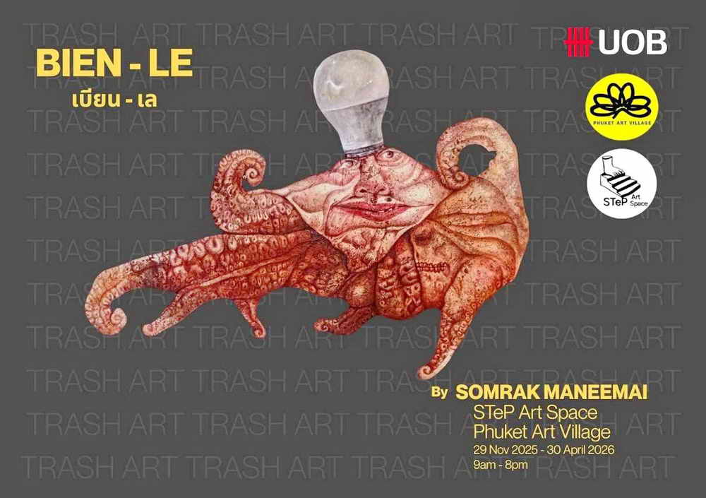 โดยผลงานทั้งหมดในนิทรรศการครั้งนี้สร้างสรรค์ขึ้นจากขยะทะเล ผู้สร้างสรรค์ผลงาน ได้แก่ นายสมรักษ์ มณีมัย ระหว่างวันที่ 29 พฤศจิกายน 2568 – 30 เมษายน 2569 จัดแสดงที่ห้องนิทรรศการ STEP ART SPACE ที่ Phuket Art Village ซอยนายะ 2 ตำบลราไวย์ อำเภอเมือง จังหวัดภูเก็ต