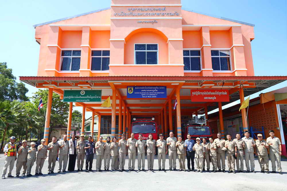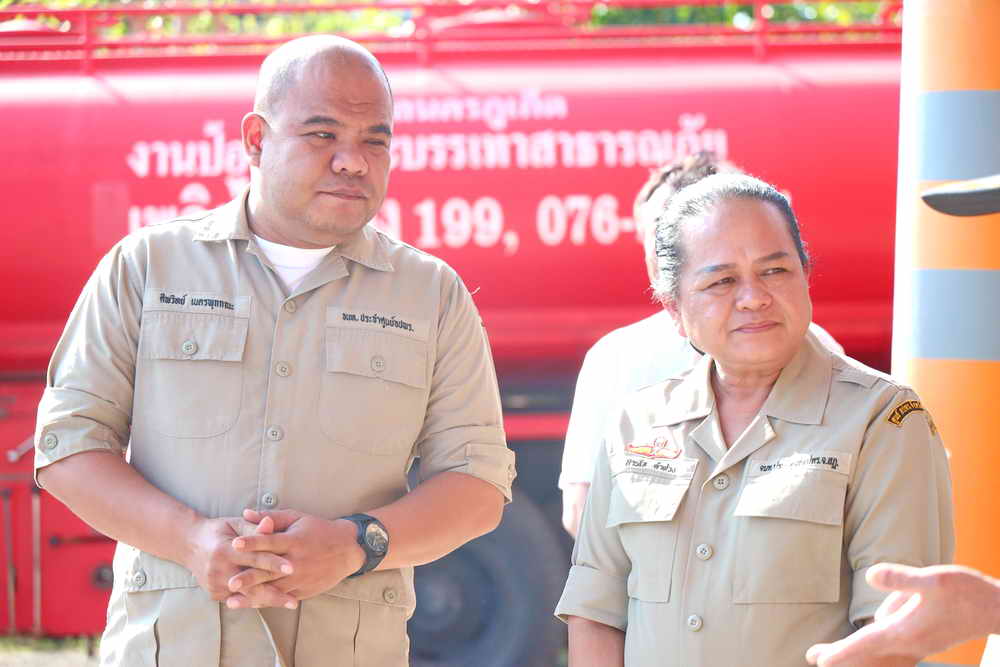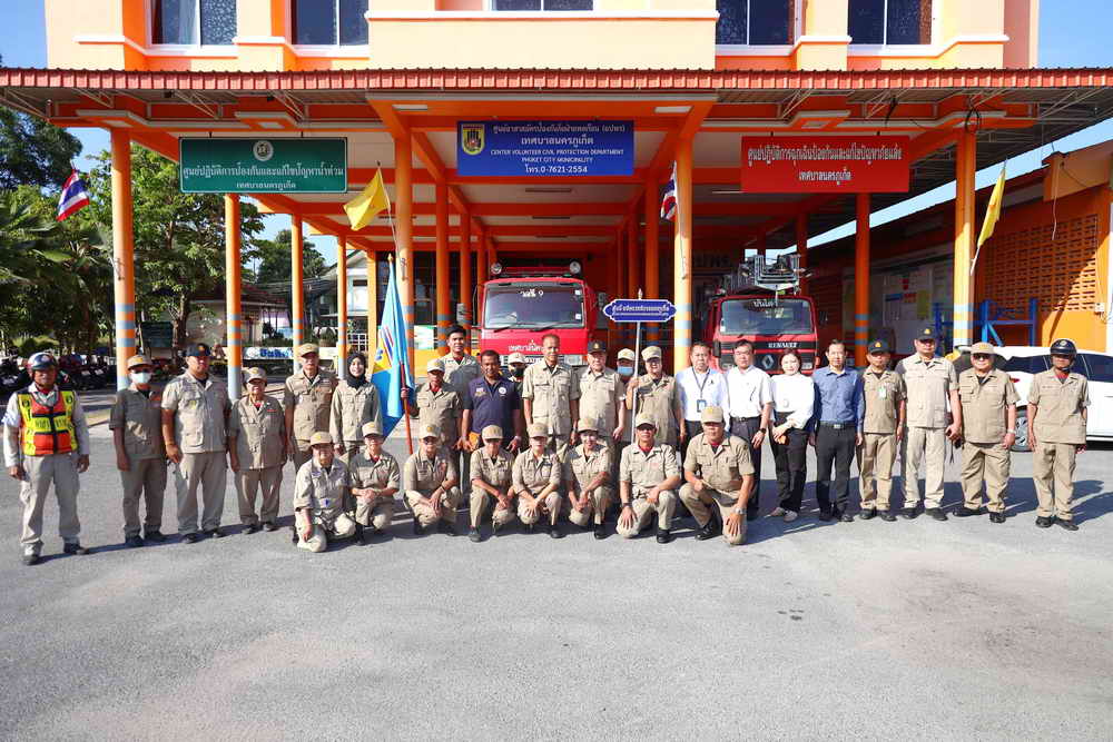 โดยมี นายพิบูลศักดิ์ กิตติธรกุล รองนายกเทศมนตรีนครภูเก็ต พร้อมคณะผู้บริหาร สมาชิกสภาเทศบาลนครภูเก็ต หัวหน้าส่วนราชการ เทศบาลนครภูเก็ต คณะกรรมการสำนักงานป้องกันและบรรเทาสาธารณภัยจังหวัดภูเก็ต ประธานและเจ้าหน้าที่อาสาสมัครป้องกันภัยฝ่ายพลเรือน (อปพร.) เจ้าหน้าที่งานป้องกันและบรรเทาสาธารณภัย เทศบาลนครภูเก็ต และเจ้าหน้าที่ผู้เกี่ยวข้อง ร่วมให้การต้อนรับฯ