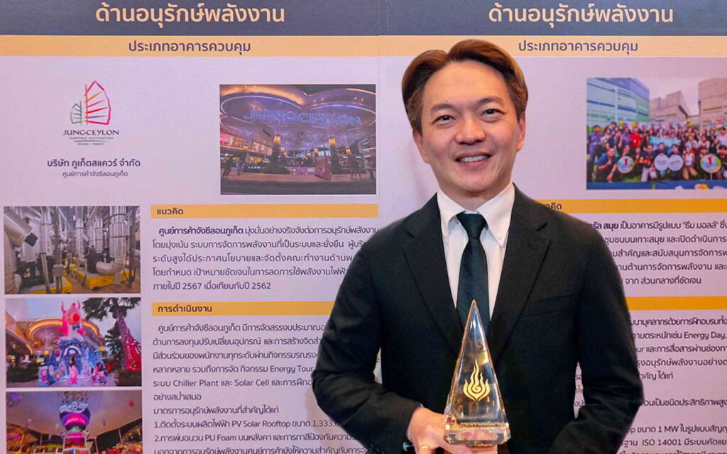 ซึ่งเป็นเวทีสำคัญในการยกย่องผลงานต้นแบบด้านการอนุรักษ์พลังงานและพลังงานทดแทนของประเทศ โดยทาง“ศูนย์การค้าจังซีลอน ภูเก็ต” ได้รับรางวัลดีเด่น ด้านอนุรักษ์พลังงาน ประเภทอาคารควบคุม