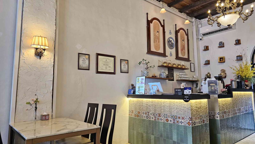ตัวร้านถูกออกแบบในสไตล์ ชิโนโมเดิร์น (Chino-Modern) เพื่อเป็นพื้นที่พักผ่อนสำหรับทุกคน ไม่ว่าจะแวะมานั่งทำงาน คุยงาน หรือพักคอยก่อนเดินทางต่อ ด้วยบรรยากาศที่ผ่อนคลายแต่ยังคงกลิ่นอายของย่านเมืองเก่าภูเก็ต