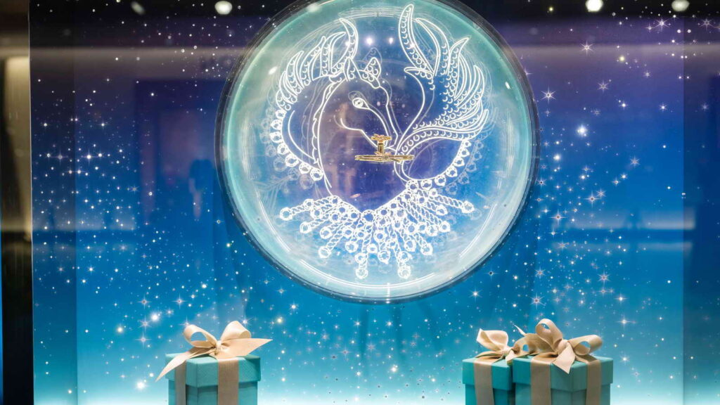 การออกแบบฟาซาดด้านหน้าร้านได้รับแรงบันดาลใจจากมรดกทางศิลปะและผลงานโมเสกในช่วงต้นศตวรรษที่ 20 ของ Louis Comfort Tiffany บุตรชายของ Charles Lewis Tiffany ผู้ก่อตั้ง Tiffany & Co. โดยนำเสนอผ่านกระเบื้องโมเสกสีน้ำเงินหลากหลายเฉดที่เรียงร้อยอย่างงดงามในลักษณะคาไลโดสโคป (kaleidoscope)