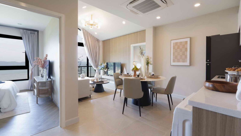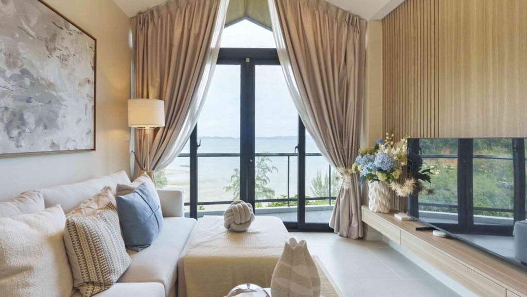 พร้อมการจัดวางผังอาคารที่ไม่บังวิวซึ่งกันและกัน ทุกยูนิตเปิดรับวิวทะเลอ่าวปอแบบพาโนรามาได้อย่างเต็มสายตา ห้องพักอาศัยมีพื้นที่ใช้สอยกว้างถึง 66 ตารางเมตร 2 ห้องนอน 2 ห้องน้ำ และ 1 ห้องนั่งเล่น ตกแต่งครบแบบ Fully Furnished ด้วยดีไซน์โมเดิร์นพรีเมียม เน้นความโปร่ง โล่ง สบาย เลือกใช้วัสดุคุณภาพและใส่ใจในทุกรายละเอียดของงานตกแต่ง ผสานบรรยากาศอบอุ่นเหมือนบ้านเข้ากับความหรูหราสไตล์รีสอร์ตอย่างลงตัว และยังรองรับไลฟ์สไตล์ Pet Friendly