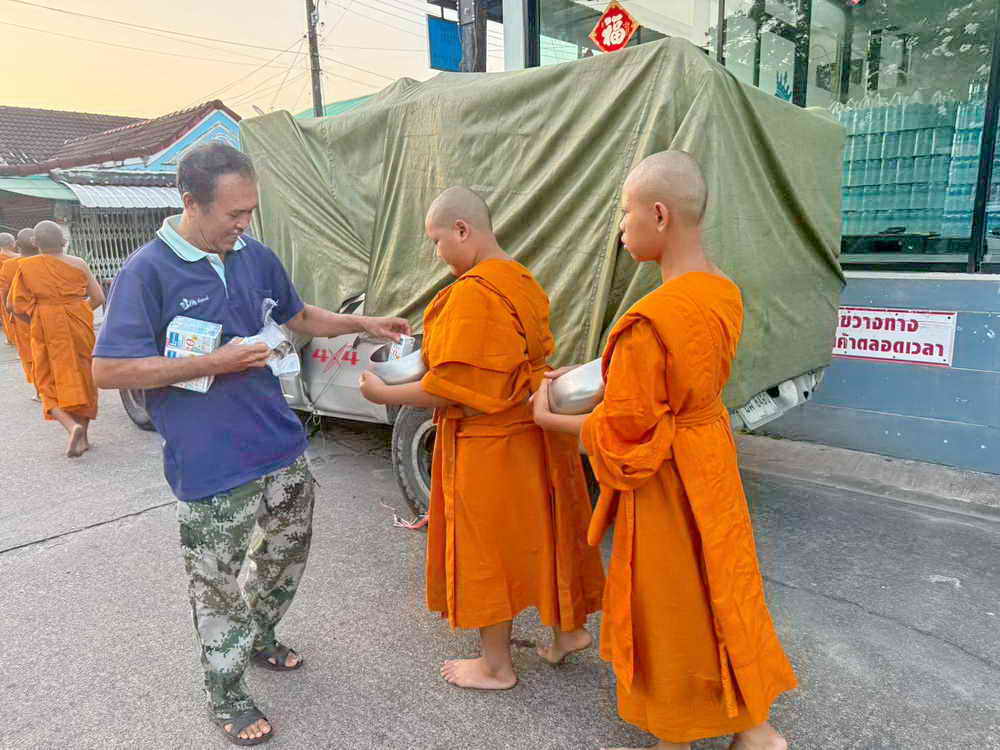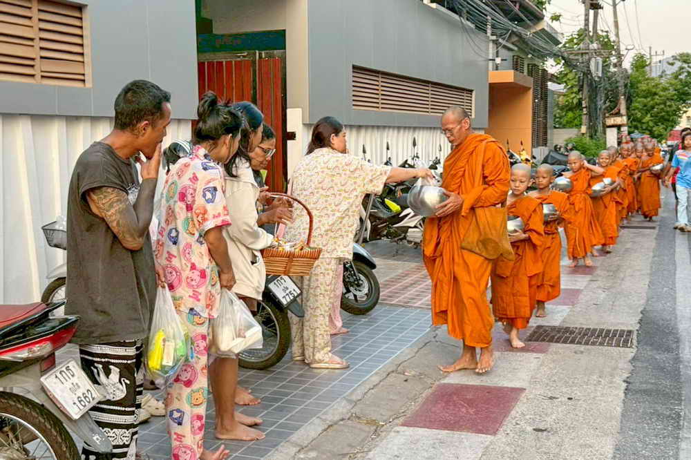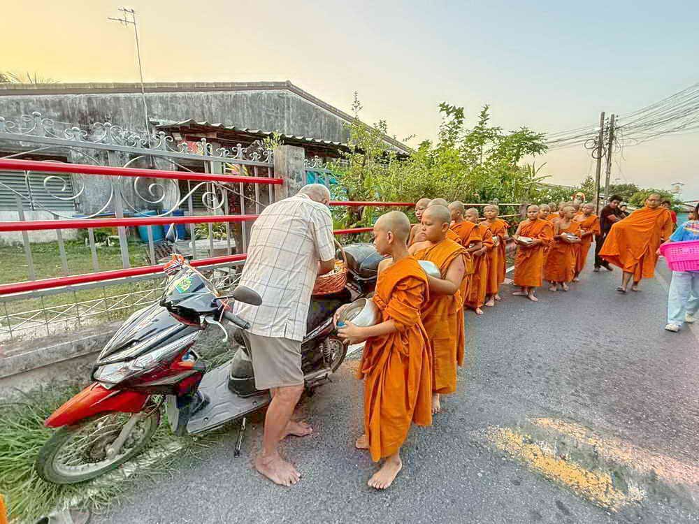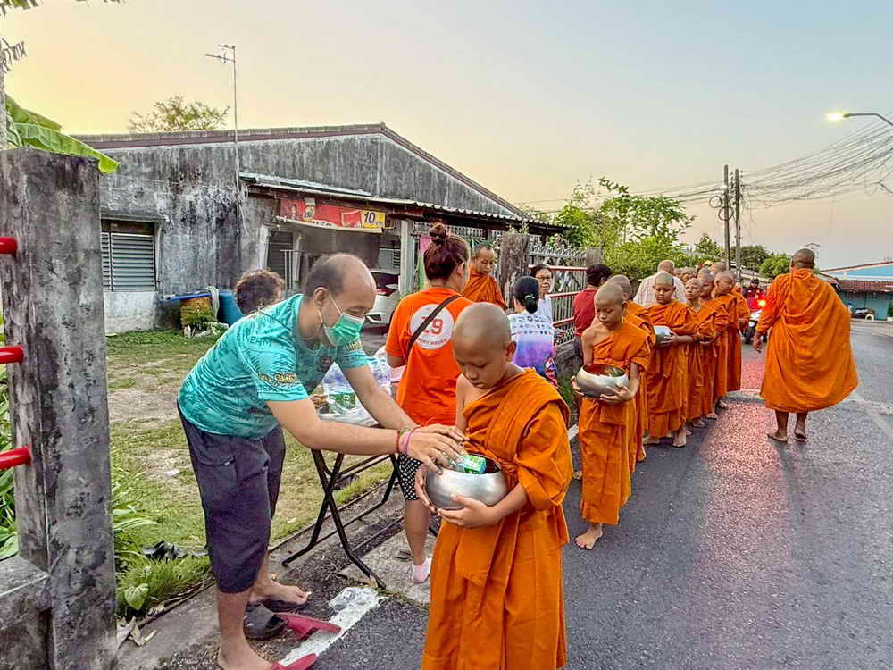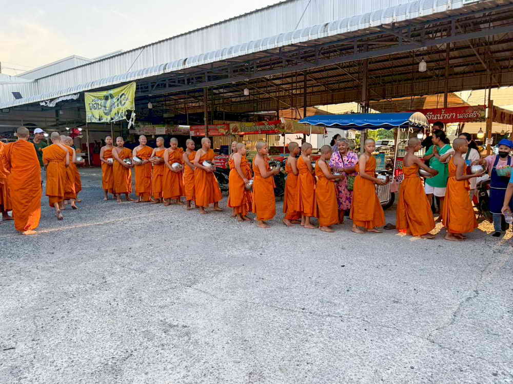 โดยมีพุทธศาสนิกชนในพื้นที่ นำอาหาร อาหารแห้ง นม ขนม มาร่วมทำบุญตักบาตรเป็นจำนวนมาก โดยในวันพรุ่งนี้ (25 มีนาคม 2569) พระสงฆ์ สามเณรมีกำหนดรับบิณฑบาต โดยลงรถบริเวณหน้าหมู่บ้านธารทอง 5 เดินเข้าภายในหมู่บ้านถึงสวนสาธารณะหมู่บ้าน
