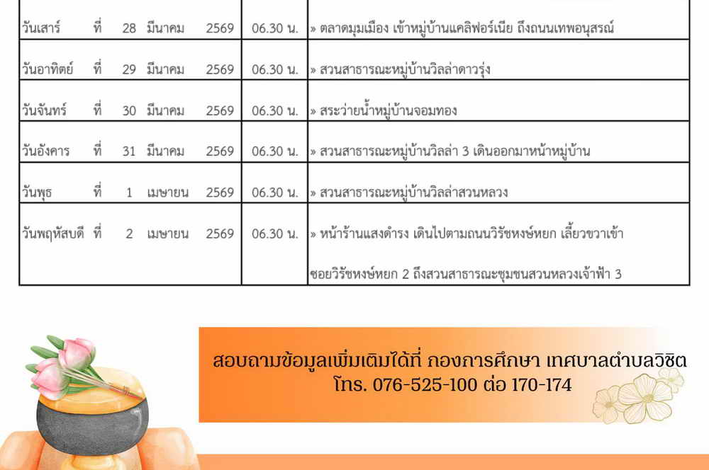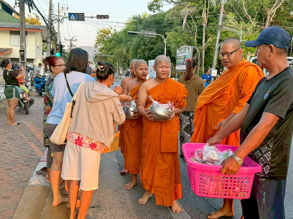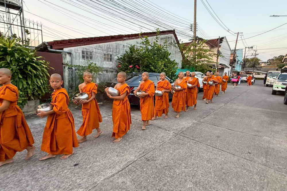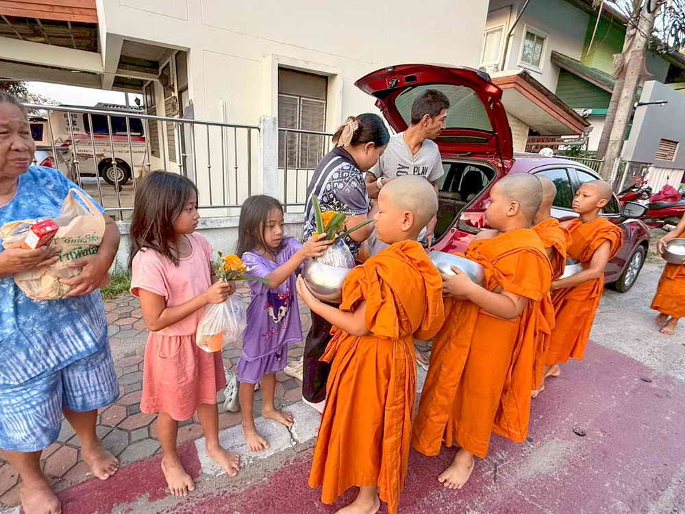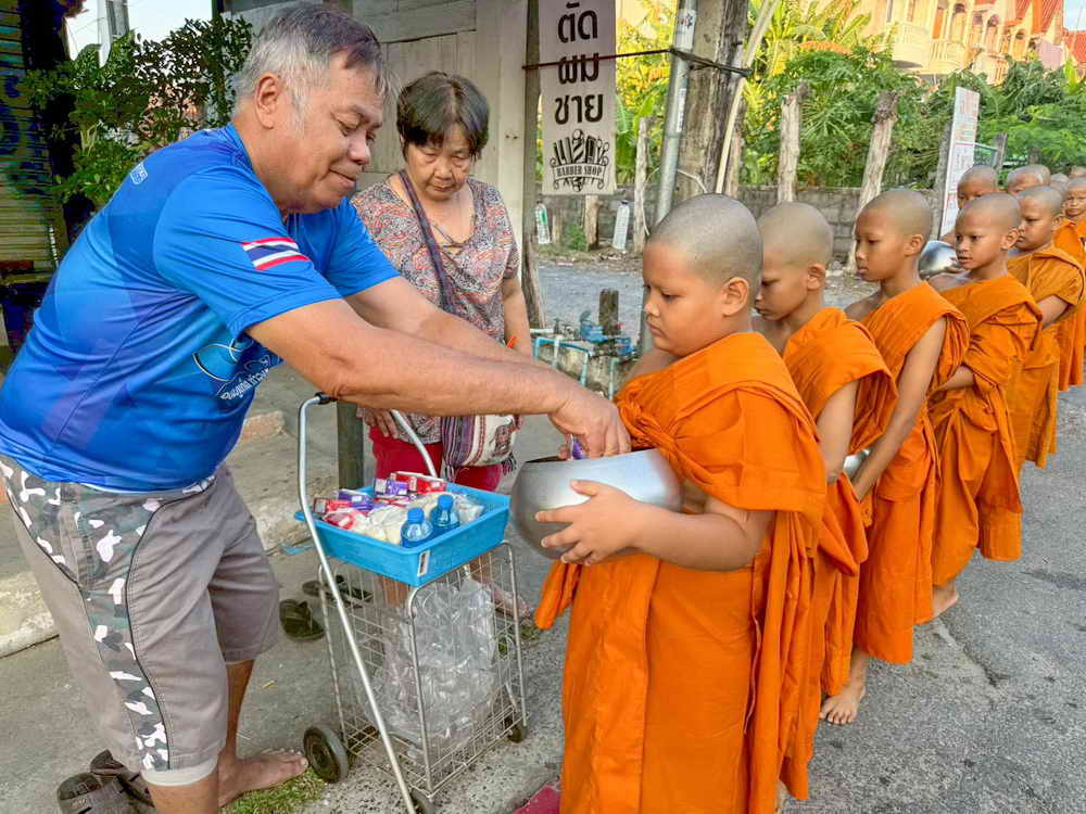 โดยมีพุทธศาสนิกชนในพื้นที่ นำอาหาร อาหารแห้ง นม ขนม มาร่วมทำบุญตักบาตรเป็นจำนวนมาก โดยในวันพรุ่งนี้ (25 มีนาคม 2569) พระสงฆ์ สามเณรมีกำหนดรับบิณฑบาต โดยลงรถบริเวณหน้าหมู่บ้านธารทอง 5 เดินเข้าภายในหมู่บ้านถึงสวนสาธารณะหมู่บ้าน