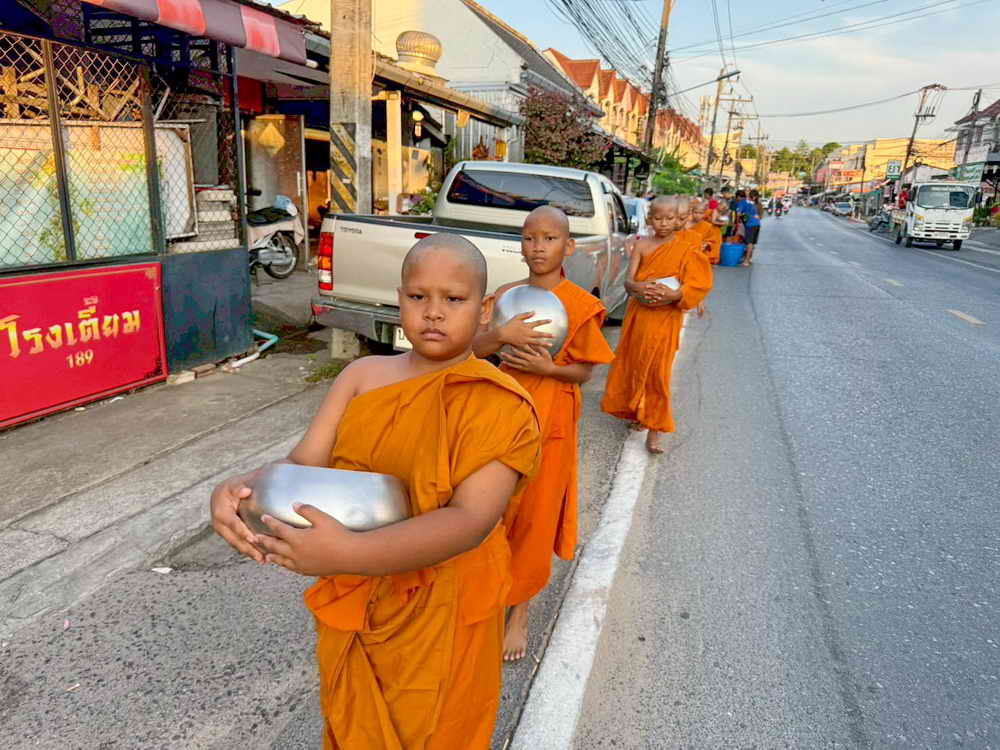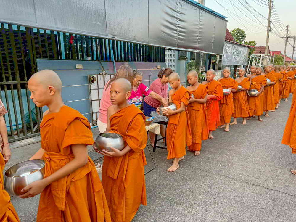 ข่าวสังคม » พระสงฆ์ พร้อมด้วยสามเณรบรรพชาภาคฤดูร้อนออกรับบิณฑบาตเป็นวันที่ 2