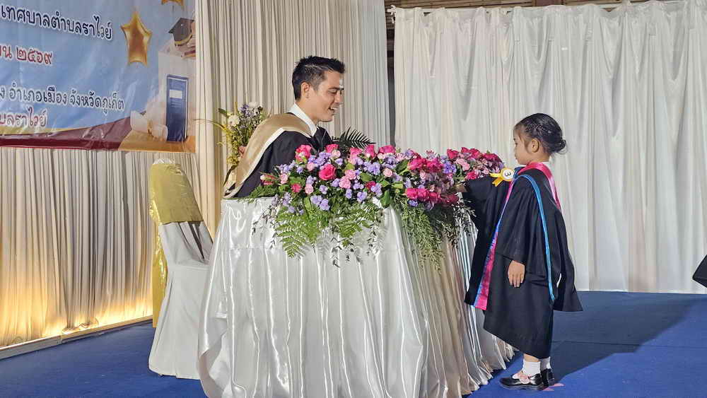 ด้านนายเทมส์ ไกรทัศน์ นายกเทศมนตรีตำบลราไวย์ ได้กล่าวว่า ต้องขอแสดงความชี่นชมและยินดีเป็นอย่างยิงกับศูนย์พัฒนาเด็กเล็กทั้ง 3 ศูนย์ ที่ได้จัดนําผลงานของเด็กนักเรียน ประจําปีการศึกษา 2568 มาจัดแสดงต่อสาธารณชน เพื่อเป็นการเปิดเผยความสามารถและพัฒนาการของเด็กนักเรียน