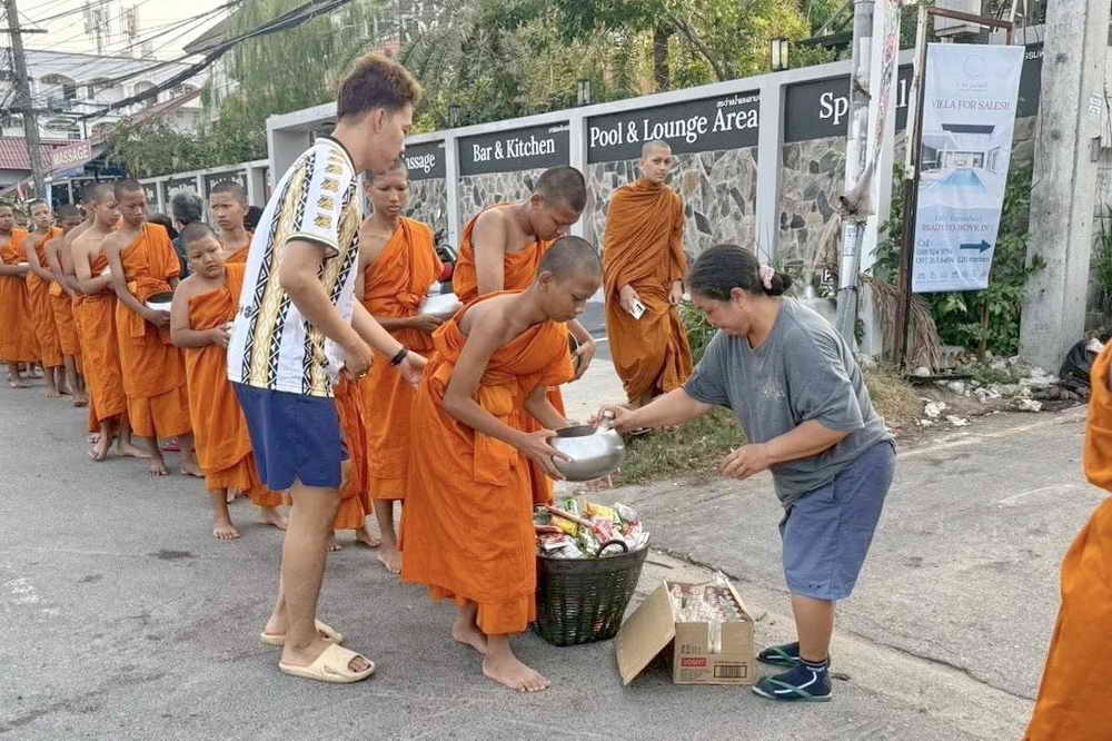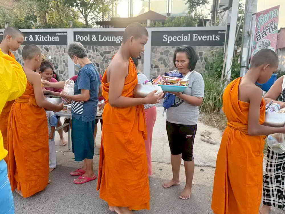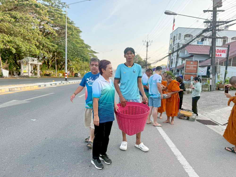 เทศบาลตำบลราไวย์ อำนวยความสะดวกบิณฑบาตรของสามเณรภาคฤดูร้อน