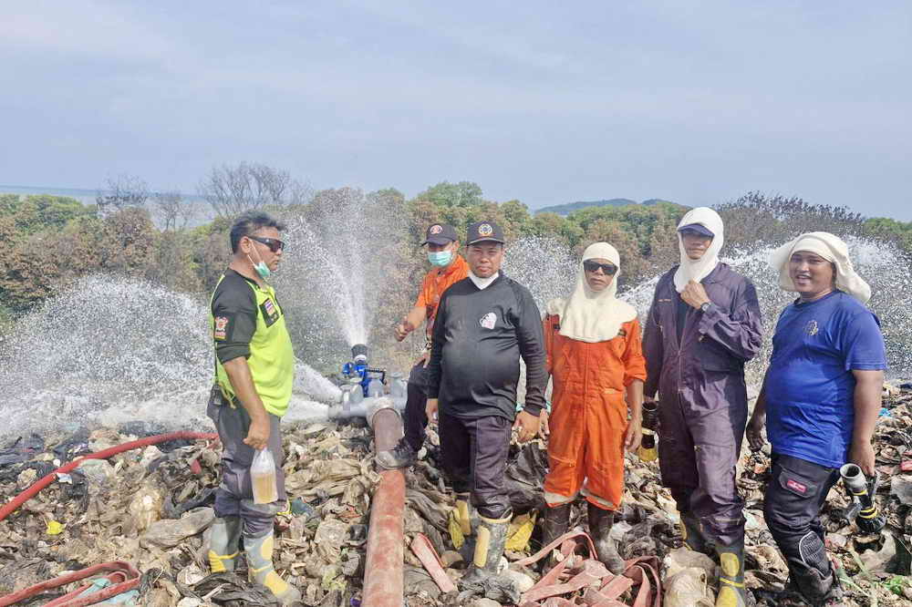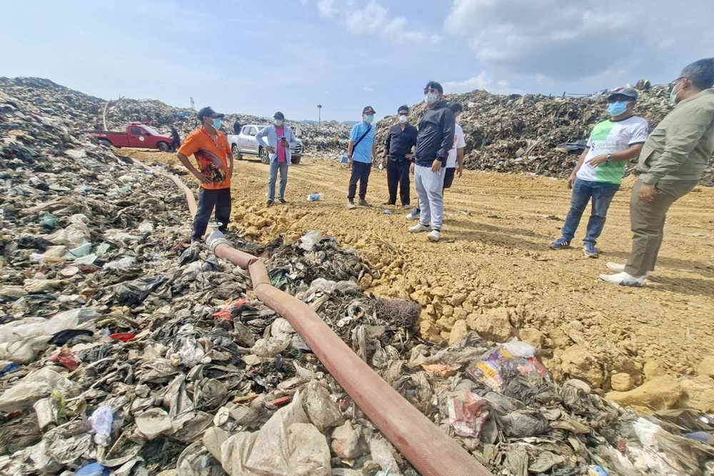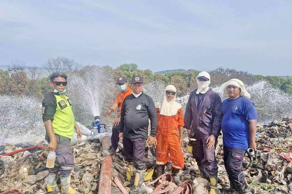 ใช้เครื่องจักรกลหนักเปิดทาง และลำเลียงสายน้ำขนาด 6 นิ้ว เพื่อสูบน้ำมาจากบ่อบำบัดน้ำเสีย ระยะทางประมาณ 3 กิโลเมตร เข้าพื้นที่กลางบ่อฝังกลบขยะบ่อที่ 5 ศูนย์กำจัดมูลฝอยรวมจังหวัดภูเก็ต เพื่อปล่อยน้ำหล่อเลี้ยงเพิ่มความชื้น และลดความร้อนสะสม ซึ่งเจ้าหน้าที่ดำเนินการติดตั้งเสร็จเป็นที่เรียบร้อยแล้ว 100% โดยมี สมาชิกสภาเทศบาลนครภูเก็ต หัวหน้าส่วนราชการ เจ้าหน้าที่เทศบาลนครภูเก็ต และเจ้าหน้าที่สำนักงานป้องกันและบรรเทาสาธารณภัยจังหวัดภูเก็ต ร่วมลงพื้นที่