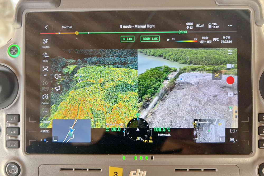 อย่างไรก็ตาม ทางทัพเรือภาคที่ 3 ได้สนับสนุนเจ้าหน้าที่นำโดรนขึ้นบินสำรวจถ่ายภาพมุมสูง เพื่อสำรวจกลุ่มควัน และจุดความร้อน ซึ่งไม่พบกลุ่มควัน และจุดความร้อนขนาดใหญ่แล้ว มีเพียงหย่อมควันเล็กน้อยบริเวณพื้นที่ด้านข้าง ซึ่งเจ้าหน้าที่งานป้องกันและบรรเทาสาธารณภัยเทศบาลนครภูเก็ต ลาดตระเวนเฝ้าระวังสถานการณ์คลอด 24 ชั่วโมง