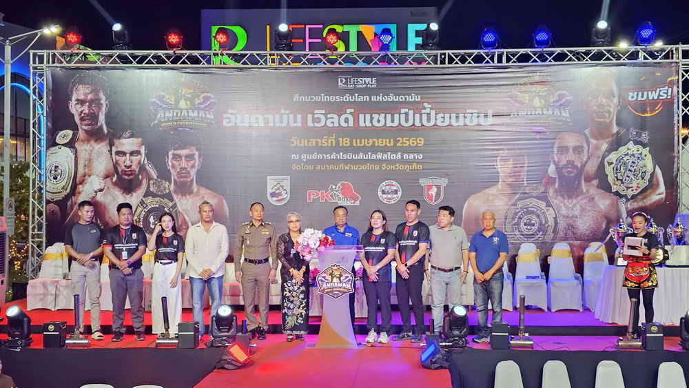 เมื่อวันที่ 18 เมษายน 2569 ที่ศูนย์การค้าโรบินสันไลฟ์สไตล์ ถลาง จังหวัดภูเก็ต นายเรวัต อารีรอบ นายกองค์การบริหารส่วนจังหวัดภูเก็ต เป็นประธานเปิดการแข่งขันมวยไทยระดับนานาชาติรายการ “ANDAMAN WORLD CHAMPIONSHIP” โดยมีนายสมบัติ สิงฆาฬะ นายกสมาคมกีฬามวยไทยจังหวัดภูเก็ต พร้อมคณะกรรมการสมาคมฯ เข้าร่วม