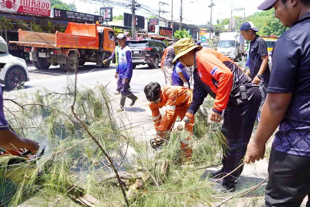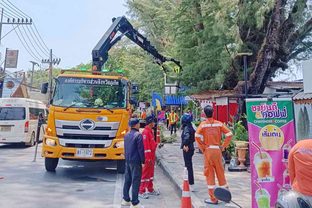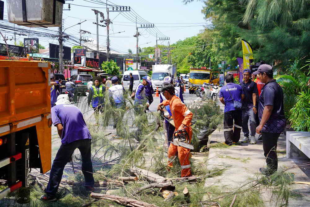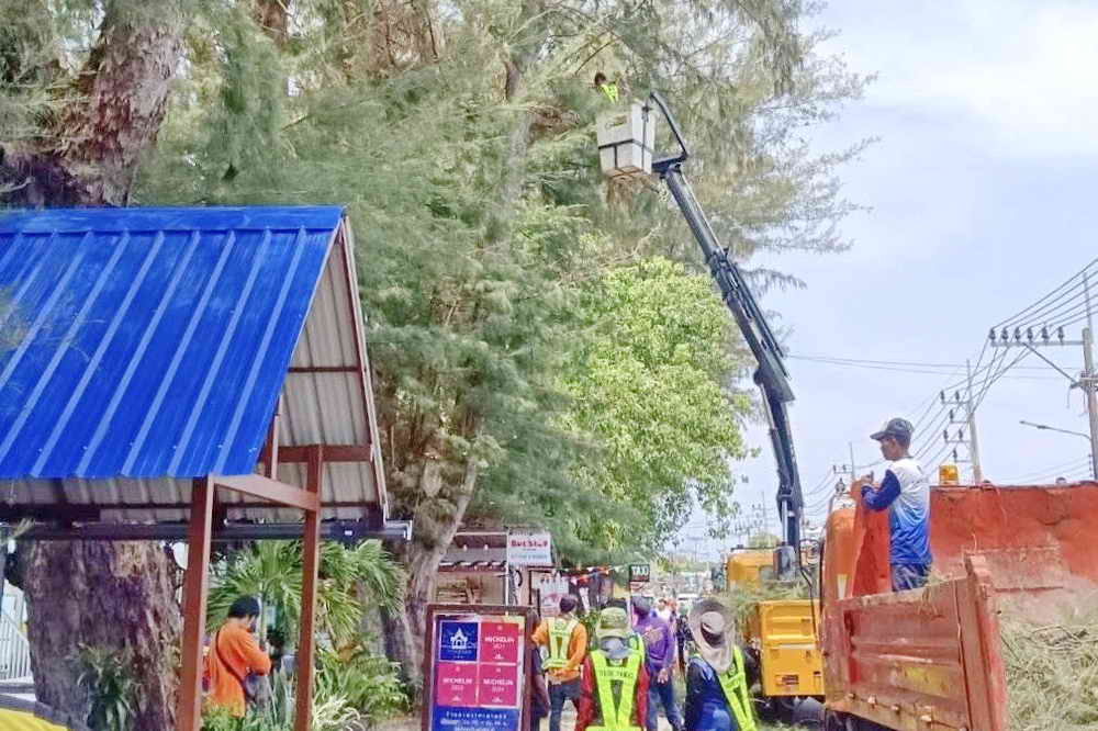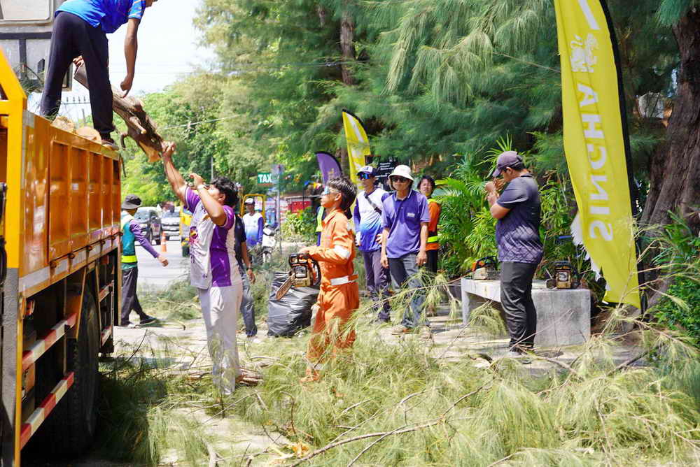 ร่วมกับเจ้าหน้าที่จากองค์การบริหารส่วนจังหวัดภูเก็ต และเจ้าหน้าที่จากแขวงทางหลวง ใช้รถกระเช้า และเครื่องจักร ตัดแต่งกิ่งต้นสนบริเวณชายหาดหน้าหาดราไวย์ ซึ่งกิ่งต้นสนอาจจะหักลงมาเกิดอันตรายต่อชีวิตและทรัพย์สิน กรณีเกิดลมพัดแรง หรือพายุได้ เพื่อความปลอดภัยของชาวบ้าน และนักท่องเที่ยว ที่ใช้ถนนและบริเวณทางเท้าในการสัญจร