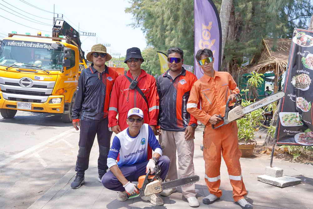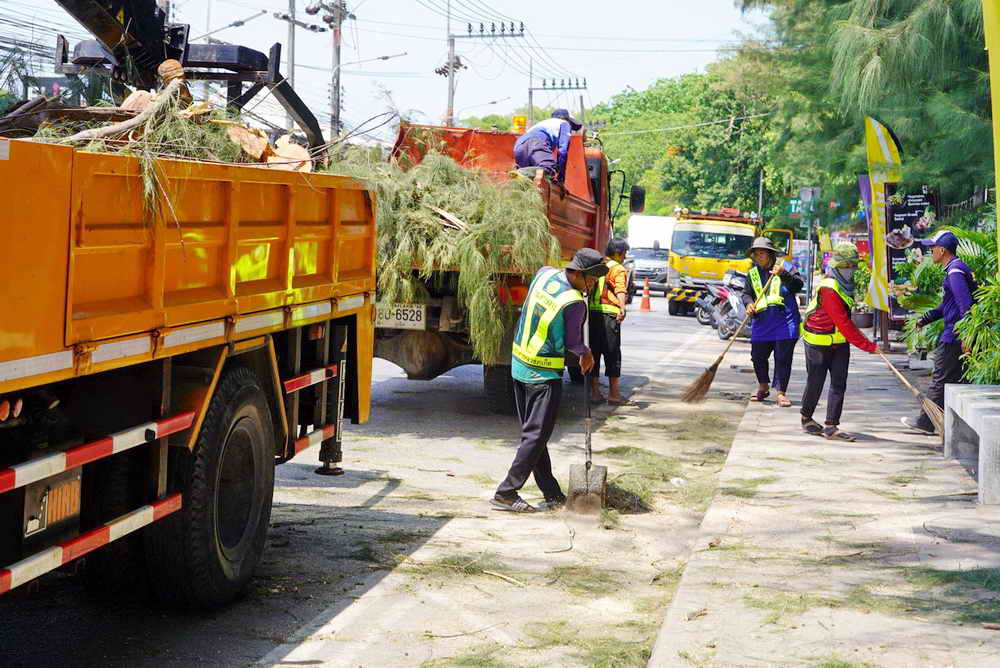 เมื่อวันที่ 21 เมษายน 2569 ที่บริเวณถนนหน้าหาดราไวย์ ตำบลราไวย์ อำเภอเมือง จังหวัดภูเก็ต นายเทมส์ ไกรทัศน์ นายกเทศมนตรีตำบลราไวย์ มอบหมายให้นางพรรณี รักนาย หัวหน้าสำนักปลัดเทศบาลตำบลราไวย์ กองช่าง งานป้องกันและบรรเทาสาธารณภัย งานเทศกิจ และคนงานสำนักปลัด