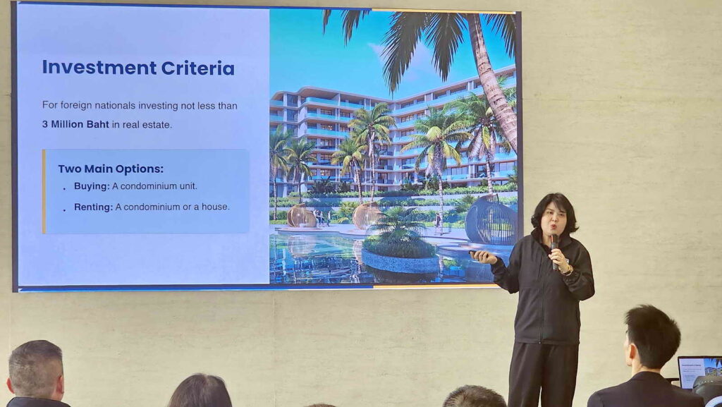 สำหรับแคมเปญ “Residence as Investment” ถูกออกแบบให้เป็นระบบบริการครบวงจร (One-Stop Service) ลดความซับซ้อนของขั้นตอนราชการ โดยกำหนดเงินลงทุนขั้นต่ำ 3 ล้านบาท ผู้ซื้อสามารถเลือกถือครองกรรมสิทธิ์แบบ Foreign Freehold หรือสิทธิการเช่าระยะยาว (Leasehold)